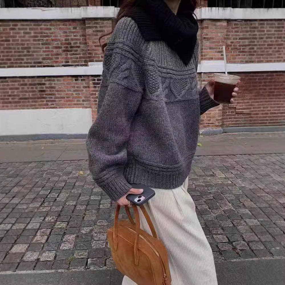2024新作セーター女性レトロ麻花韓系ソフトモチモチの頭がゆったりしています。