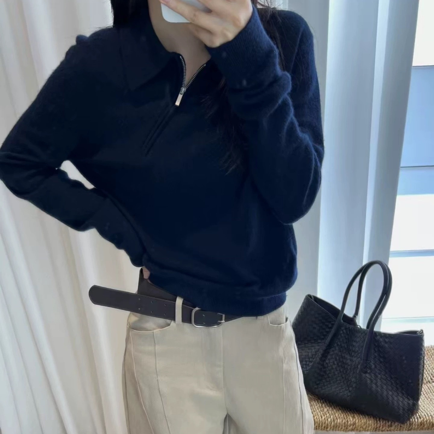 纯羊毛衫女式翻领斜门襟拉链毛衣秋冬新款个性潮流设计风格套头衫