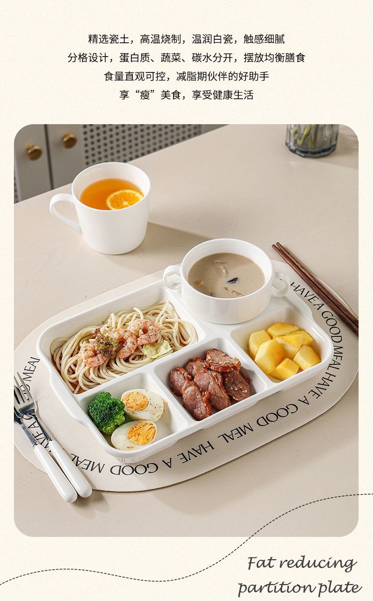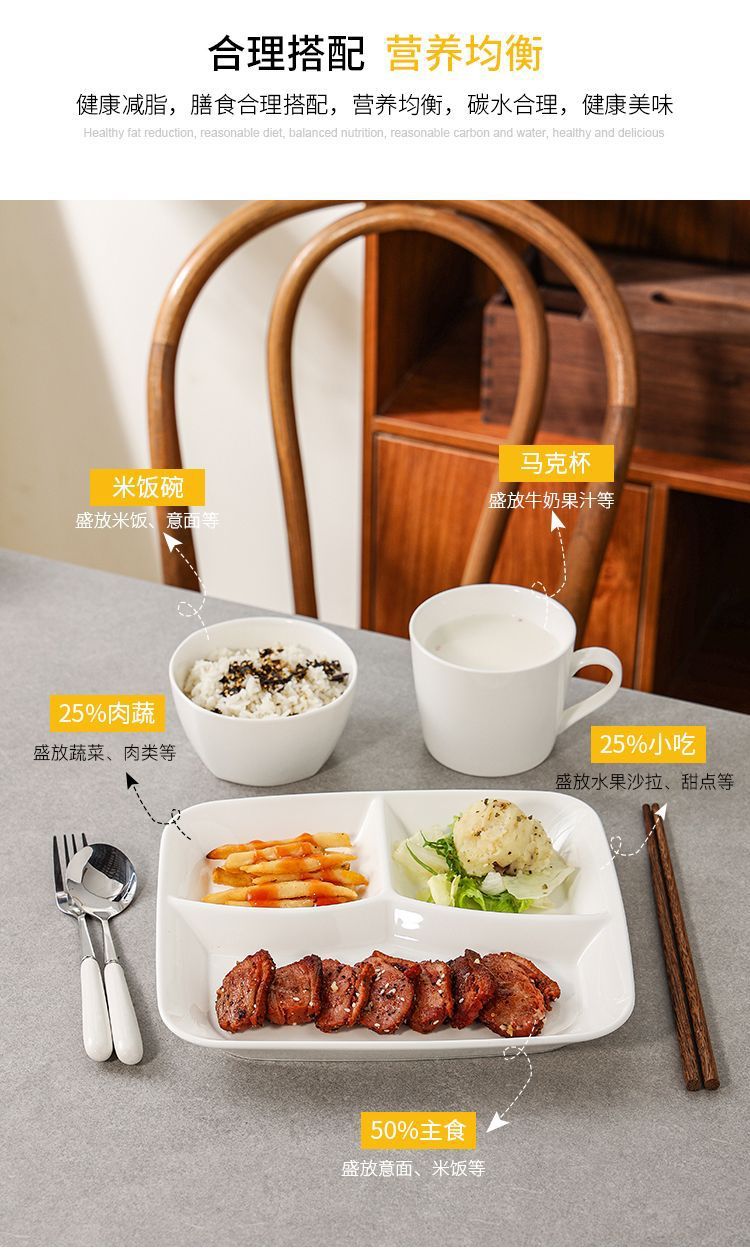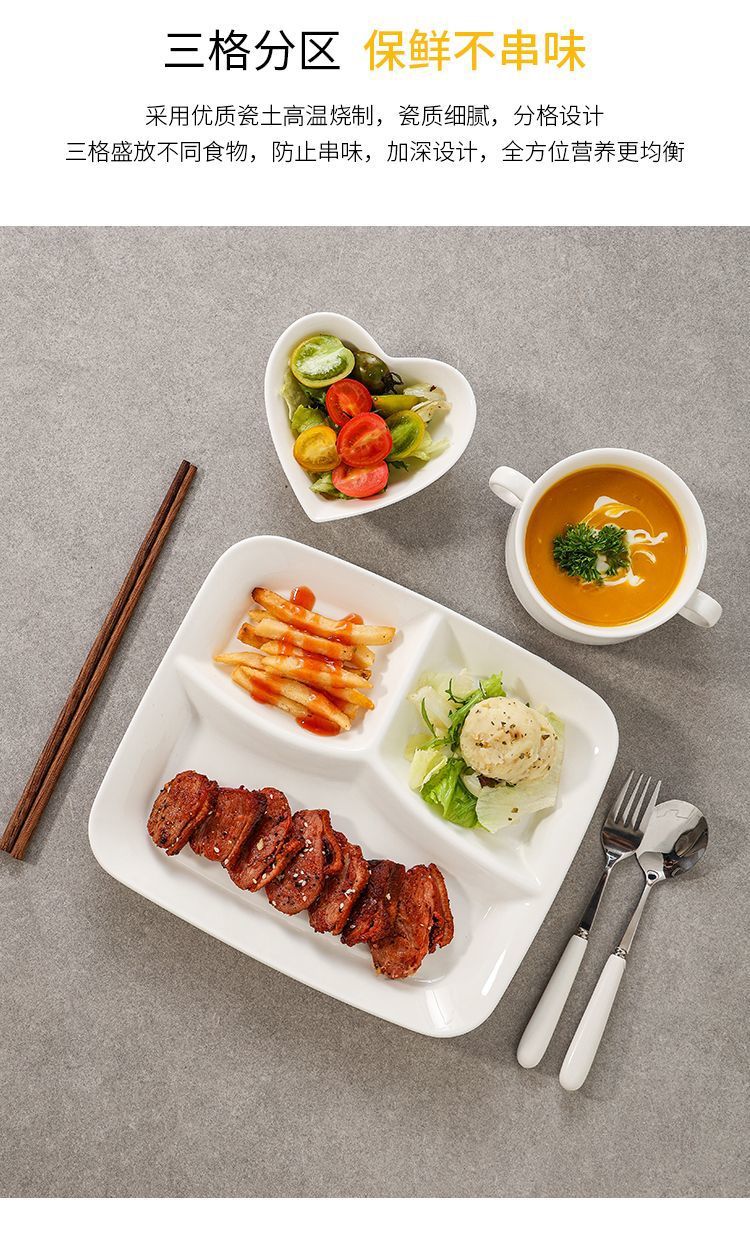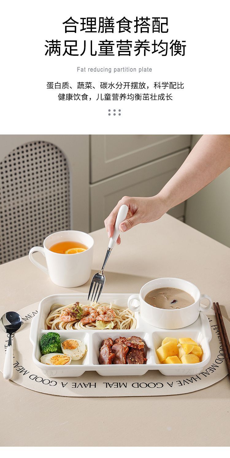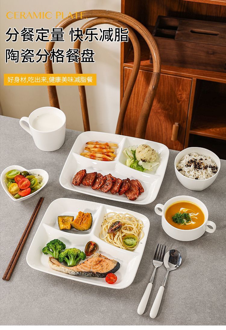 分格减脂分餐盘家用家庭制早餐餐具儿童陶瓷分隔减肥定量盘子餐盘