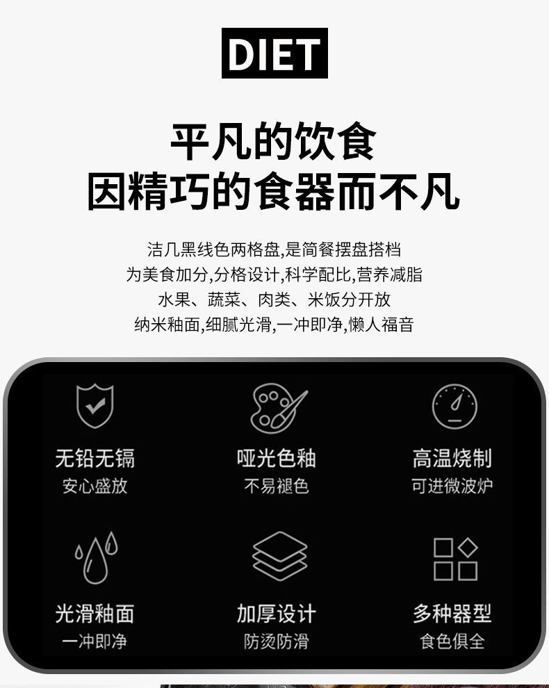 分格餐盘陶瓷盘子家用高级感儿童分餐盘西餐减脂专用圆盘方盘法式