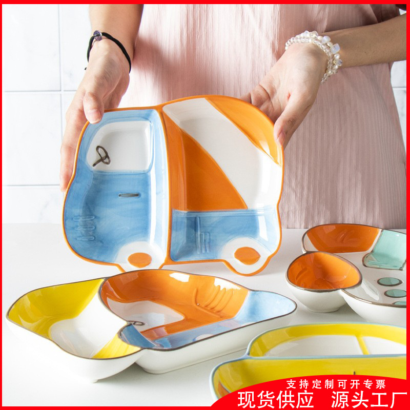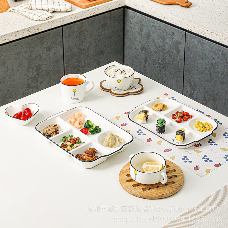 創意陶磁器仕切り食事皿創意家庭用子供朝食皿211減脂定量分格食事皿卸売り