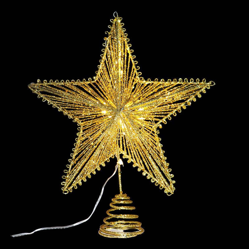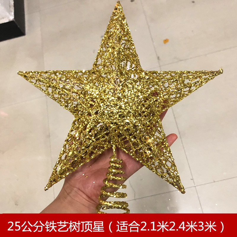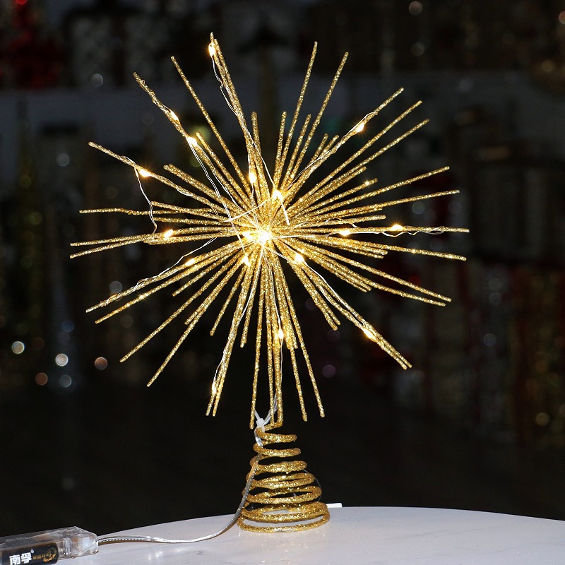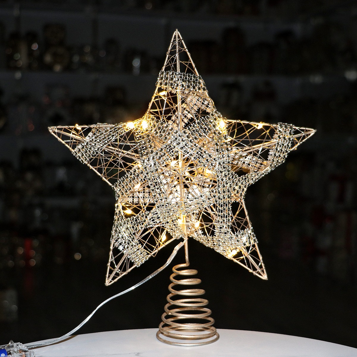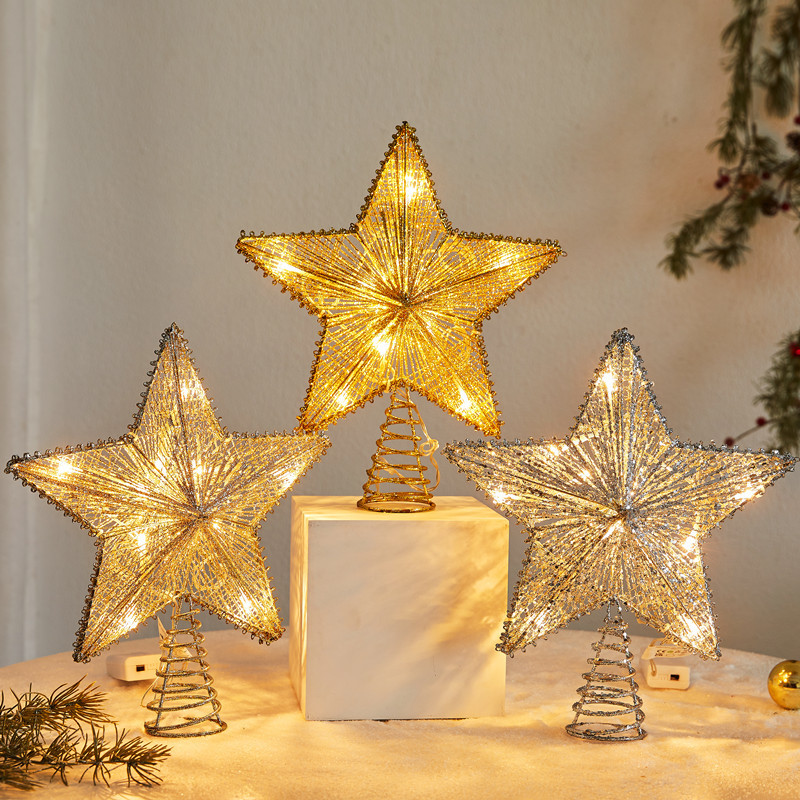 2025 クリスマスツリートップスター アイアンアート発光立体五芒星ツリートップスターゴールドパウダークリスマスツリートップデコレーション