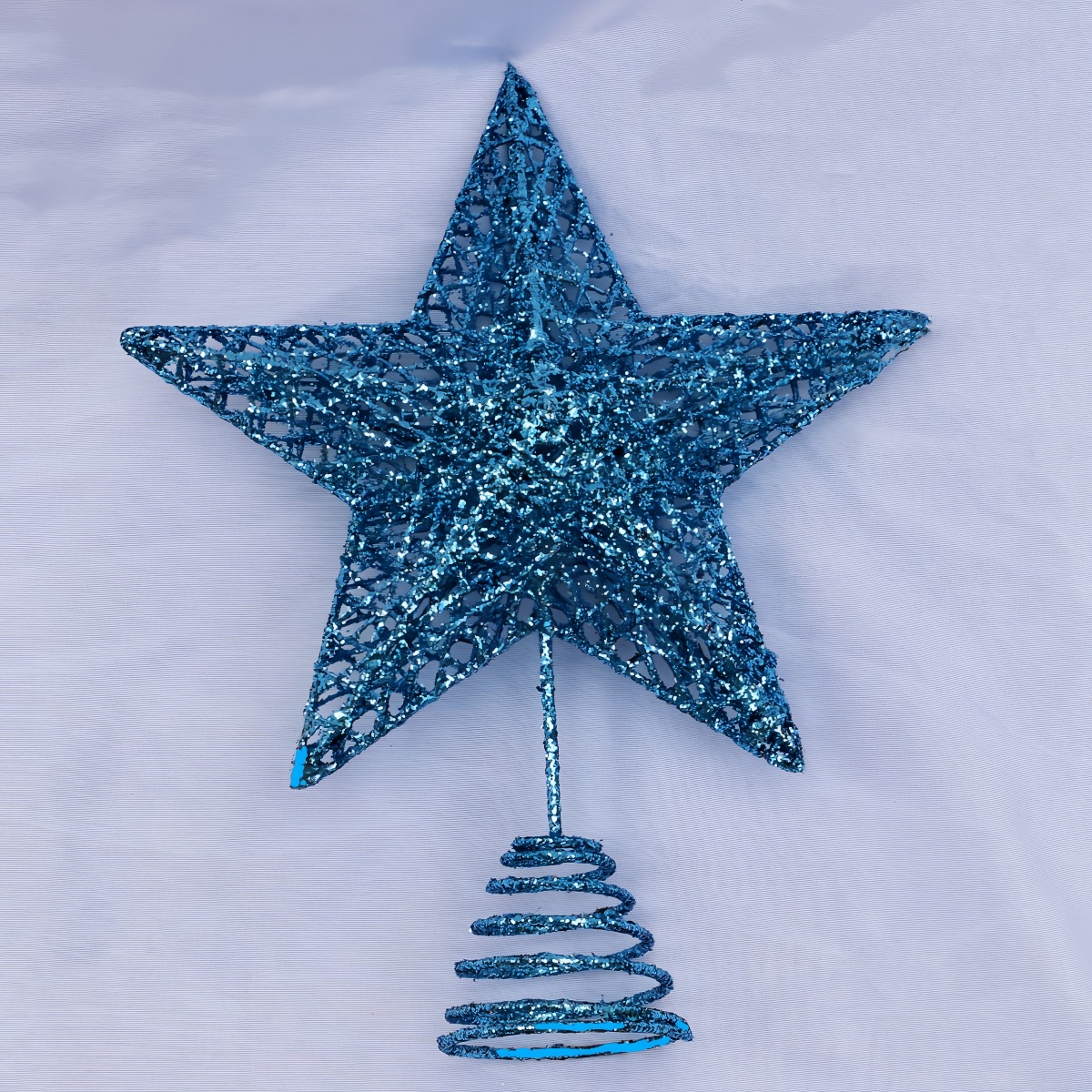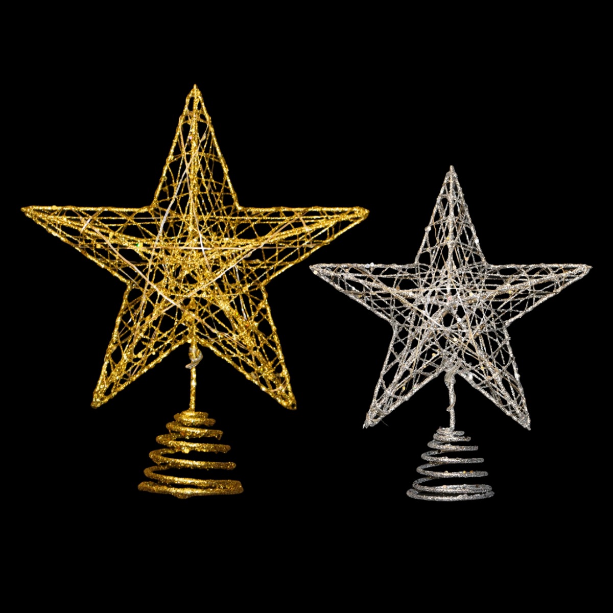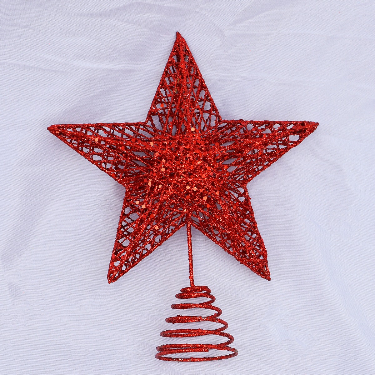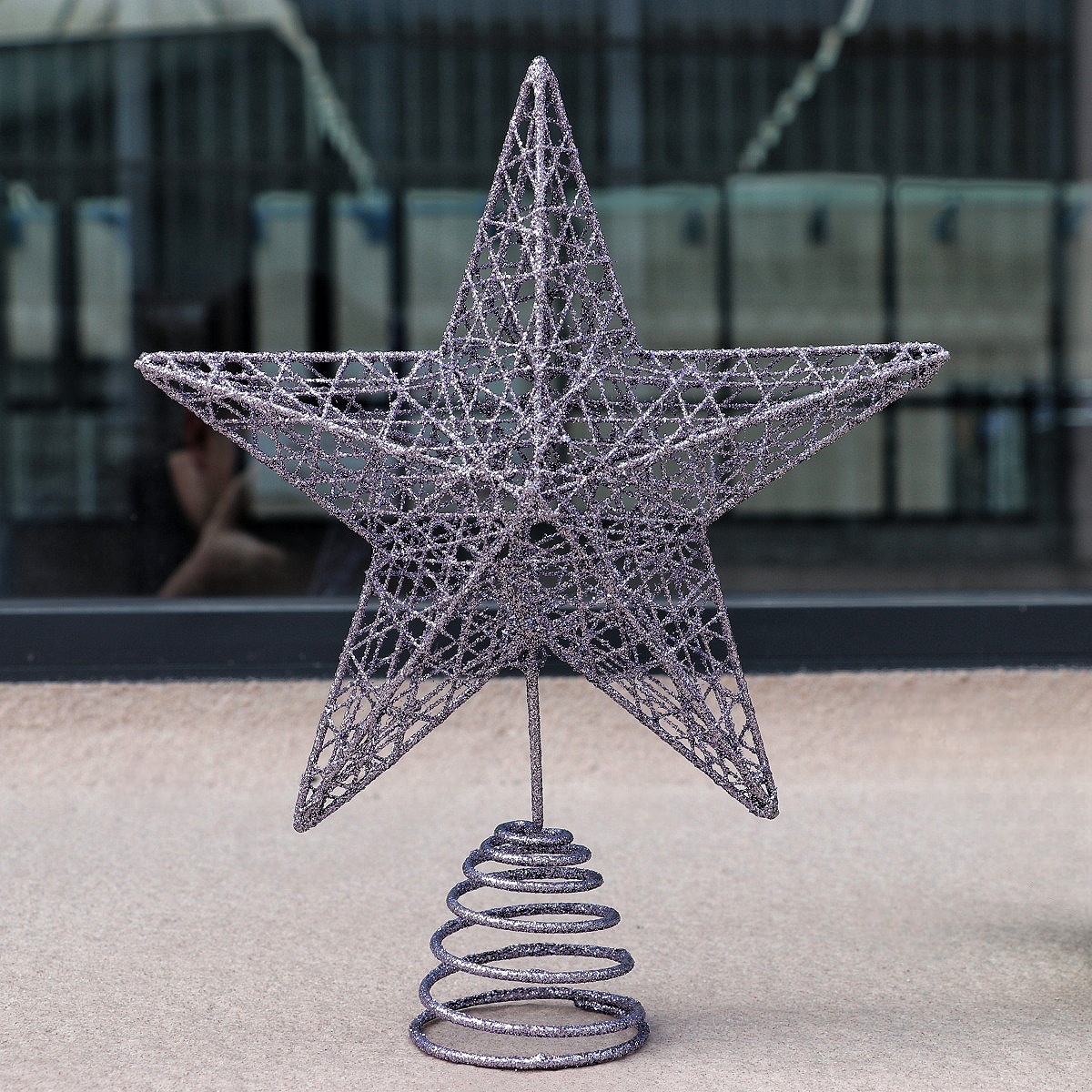 圣诞树顶星圣诞树装饰品装饰星星圣诞树发光顶部灯闪粉铁艺五角星
