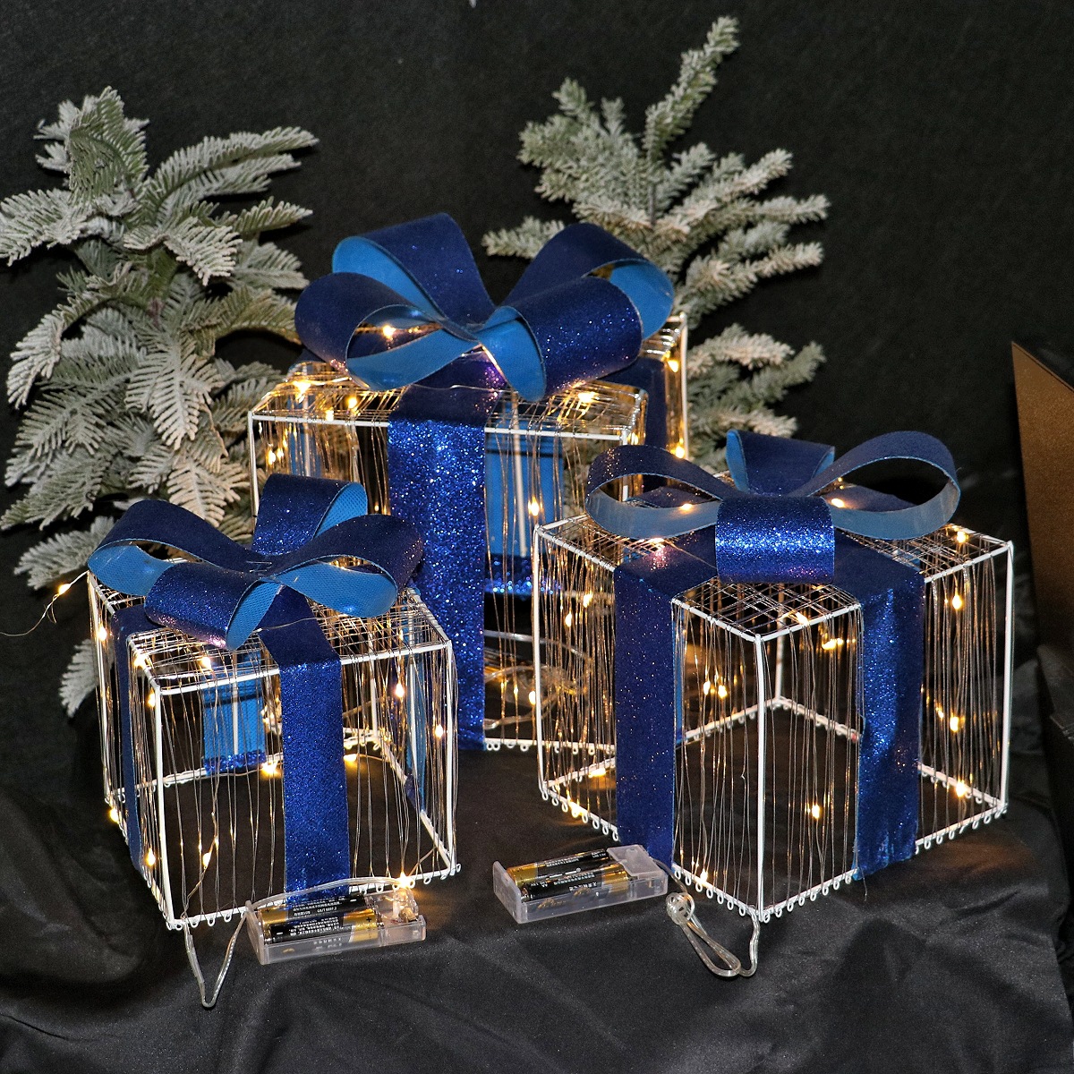 2025年新作クリスマスギフトボックス3点セット 鉄製発光クリスマスツリー飾り 照明付きアクセサリー 装飾用ギフト