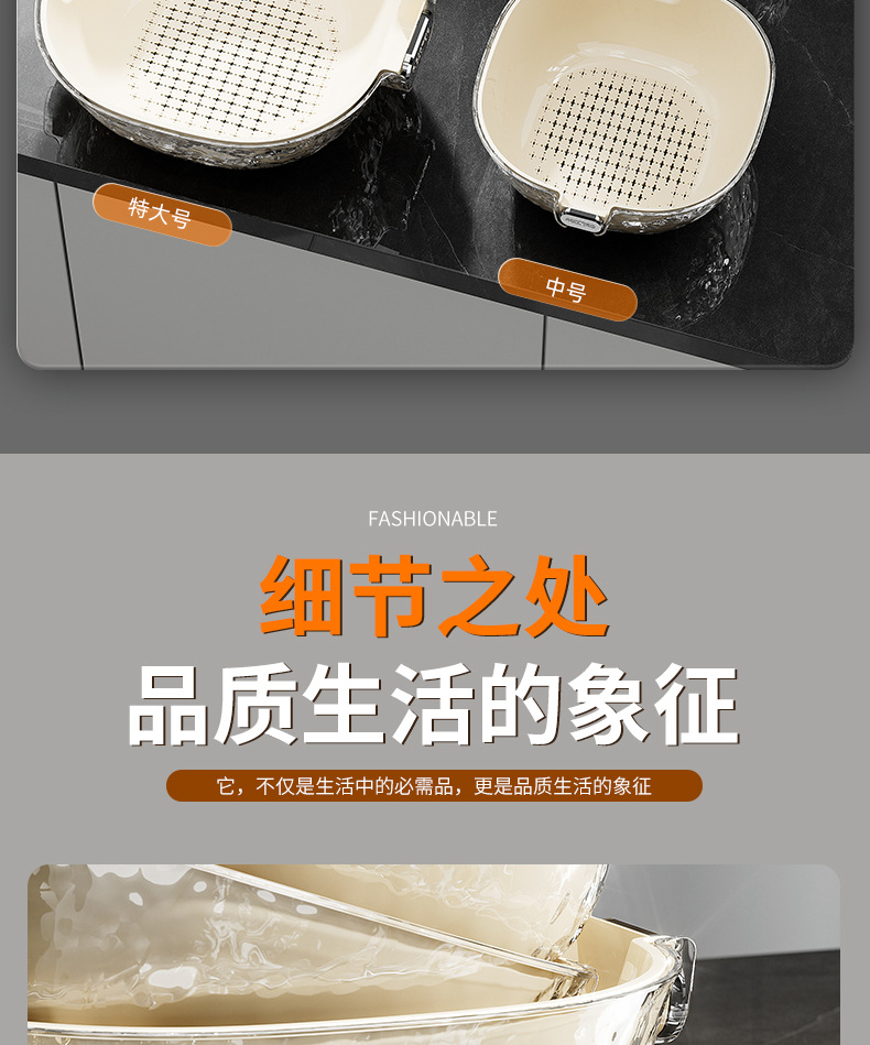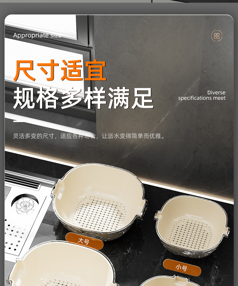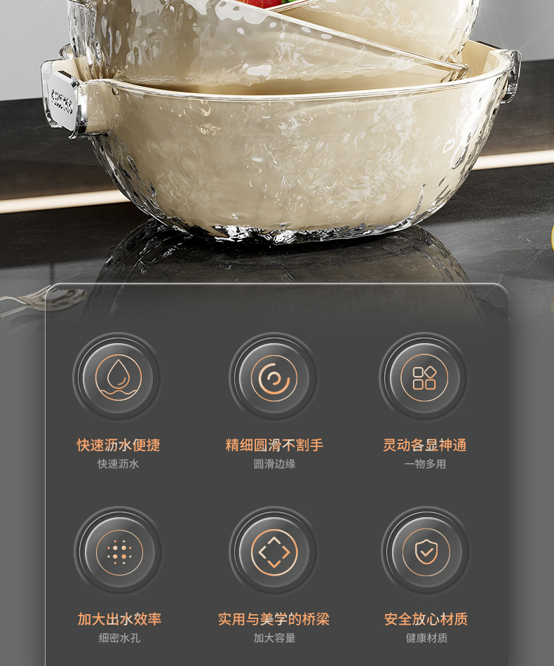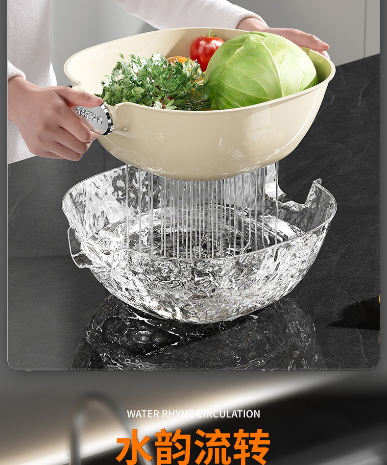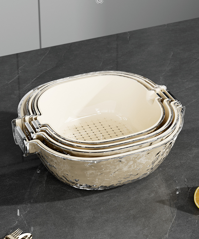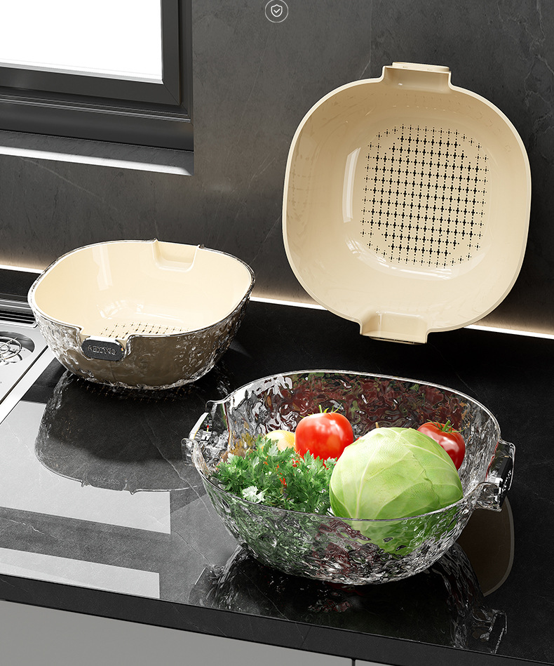 二重の水たまりの家庭用の台所の野菜のたらいのプラスチックの野菜のかごの米のかごの果物のたらいのinsは軽くて豪華な野菜のかごを洗います。