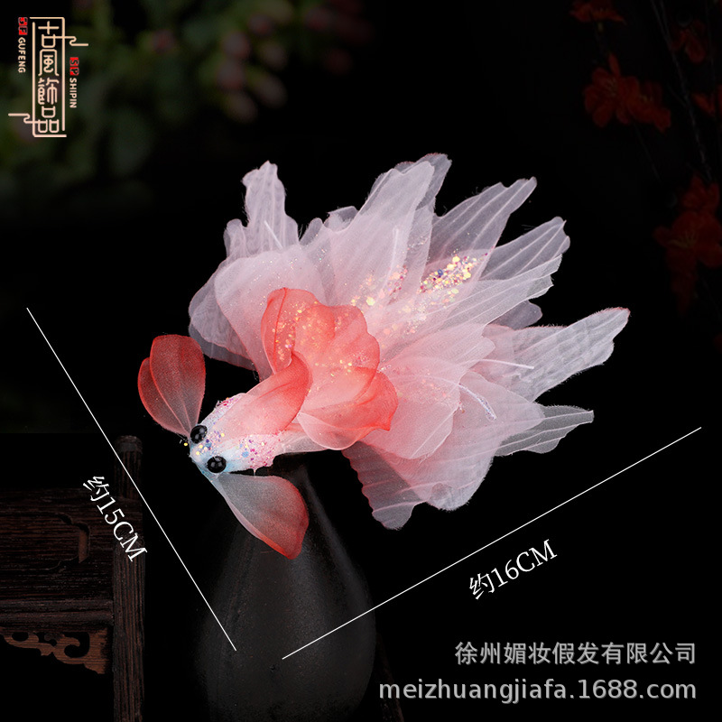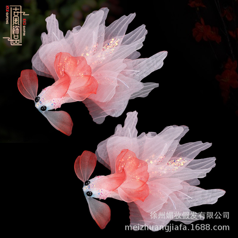新款原创设计手工制作烫花锦鲤红色系金鱼发夹白搭汉服发夹头饰