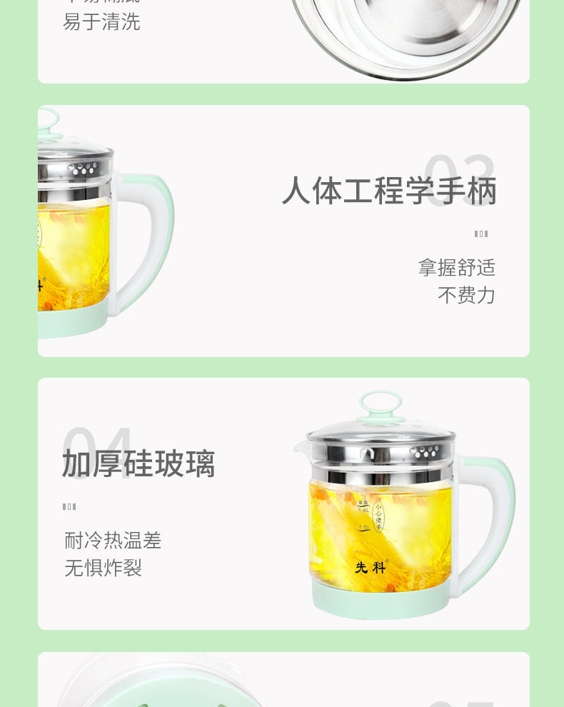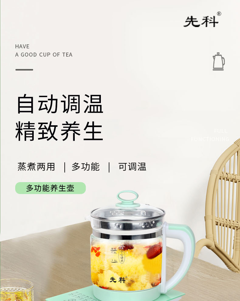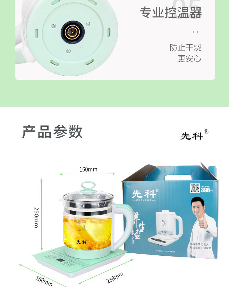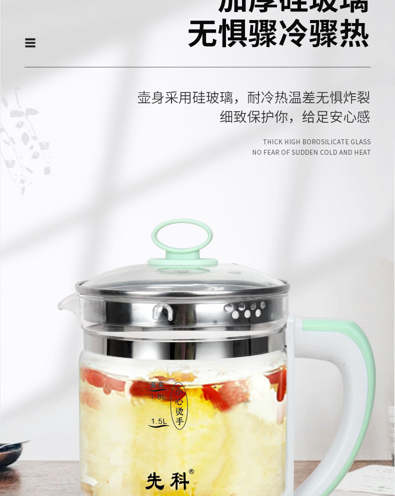 先科養生壺家庭用知能多機能ガラス電気ポット茶器花茶湯煎薬壺軽定