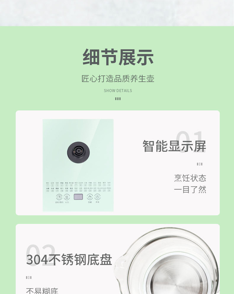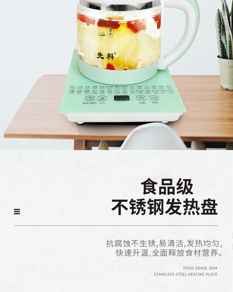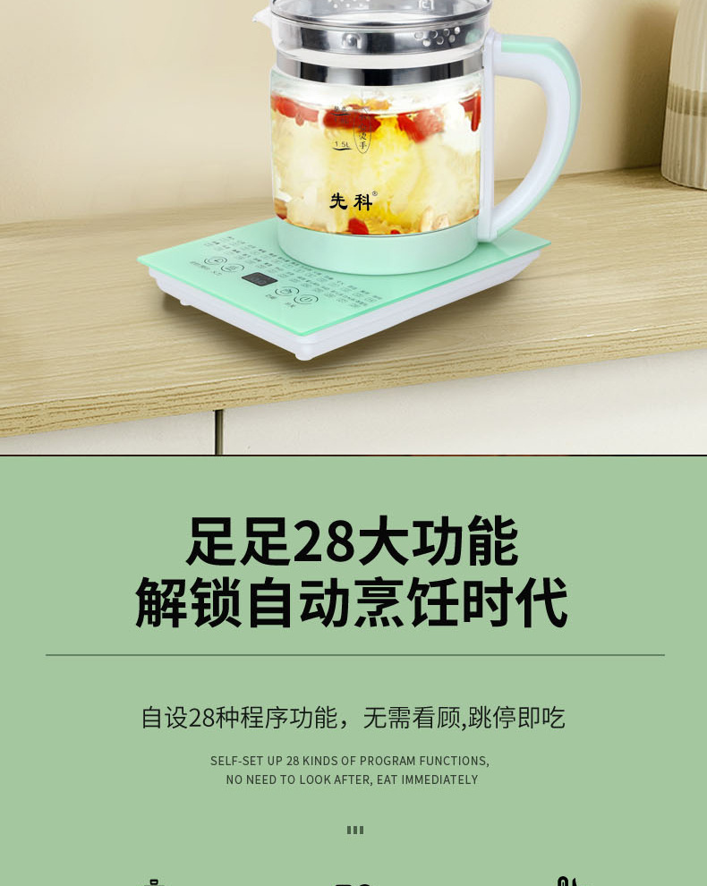 先科養生壺家庭用知能多機能ガラス電気ポット