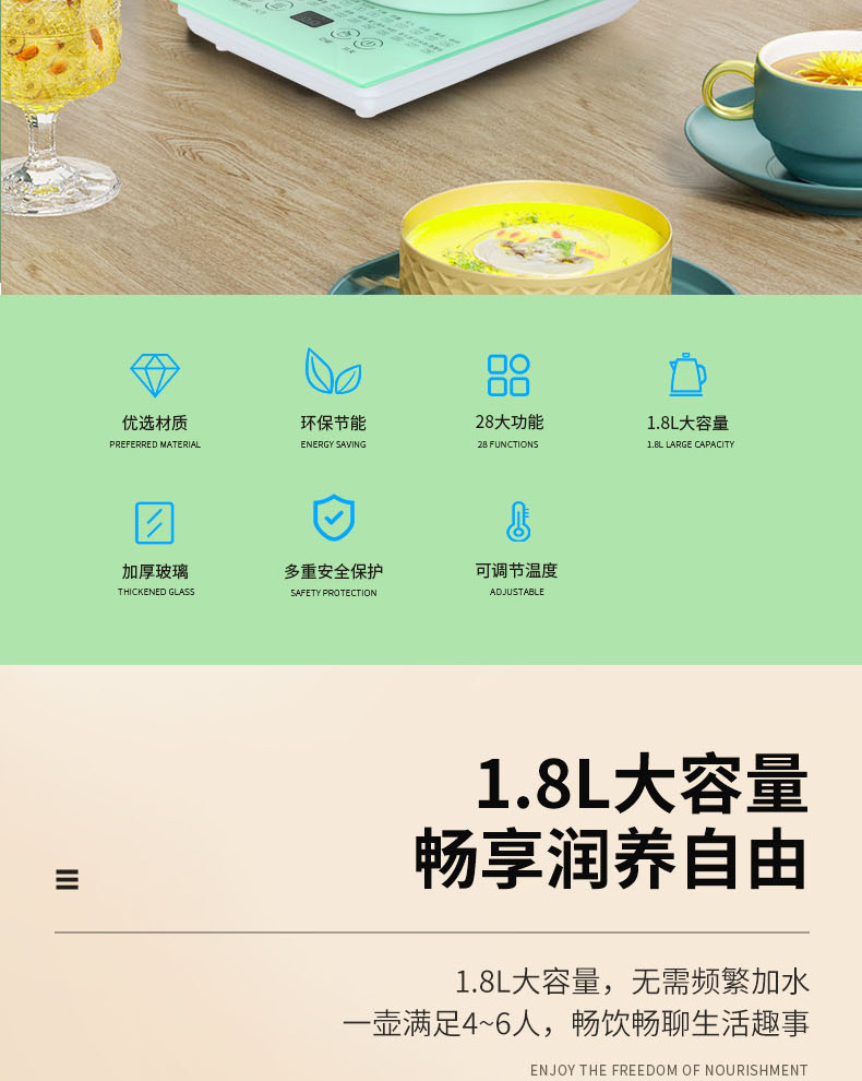養生壺家庭用多機能1.8l全自動湯煎薬壺オフィス泡煮花急須プレゼント代理