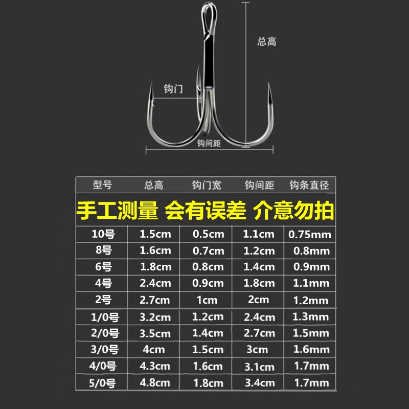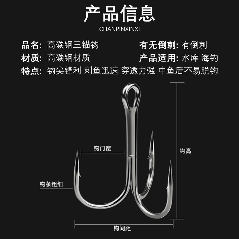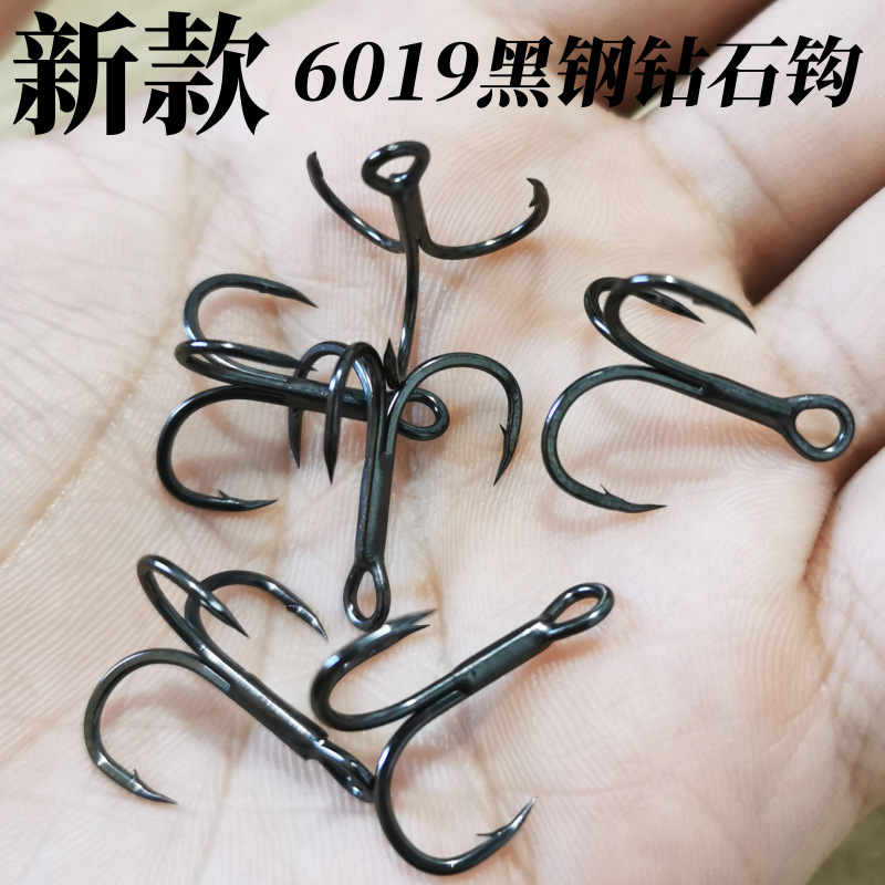 新型5倍強化6019黒鋼三本フック超鋭利超強度アンカーフック路亜餌専用フック