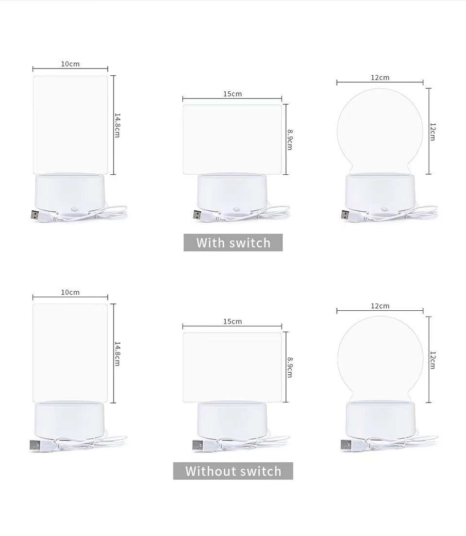 国境を越えたDIYアクリル板、木製発光台座、ホワイトボード、3Dナイトライト、手書き発光メッセージボード、テーブルランプ