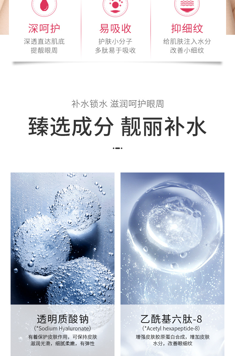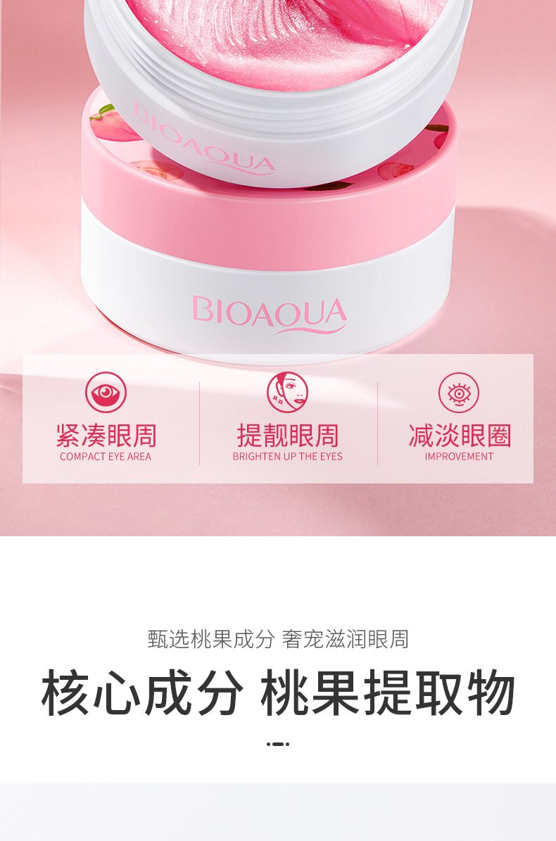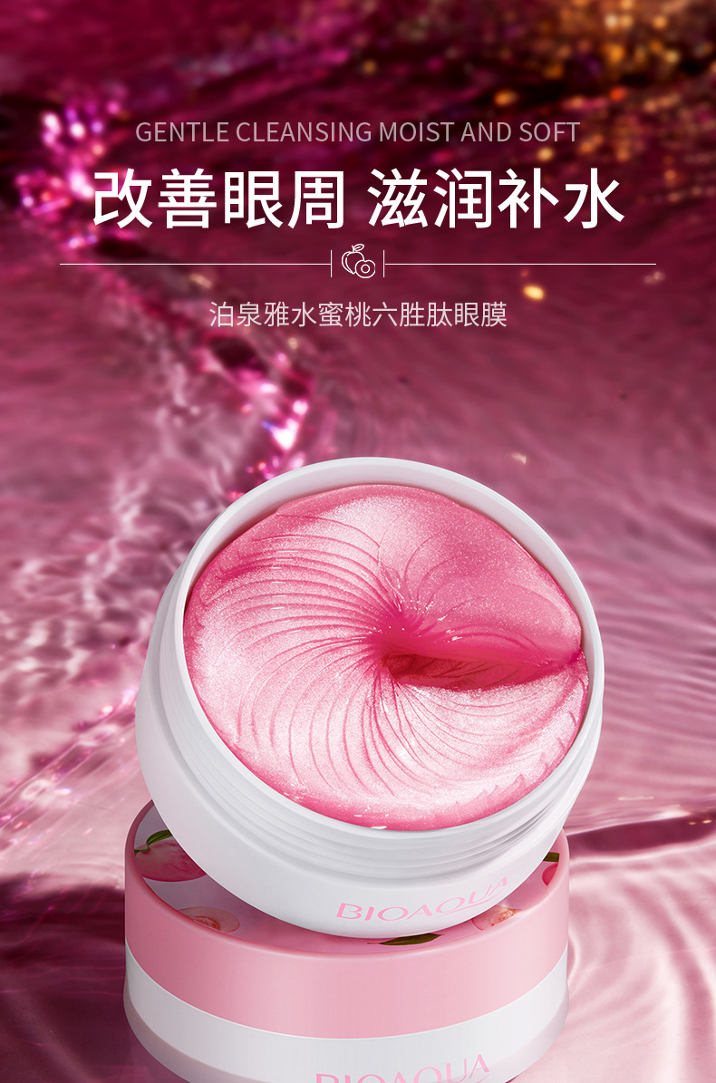 製品名 BoQuanya ピーチ 6 ペプチド アイマスクは、保湿と保湿を行い、小じわを改善し、目の周りを軽減するアイケアを提供します。