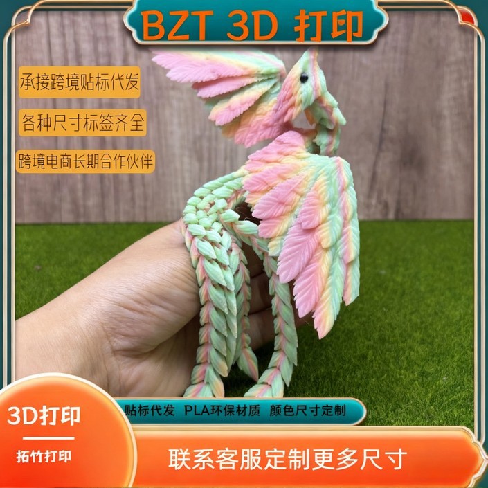 3D打印多色打印凤凰关节可活动翅膀可展开活动铰链式玩具生日礼物