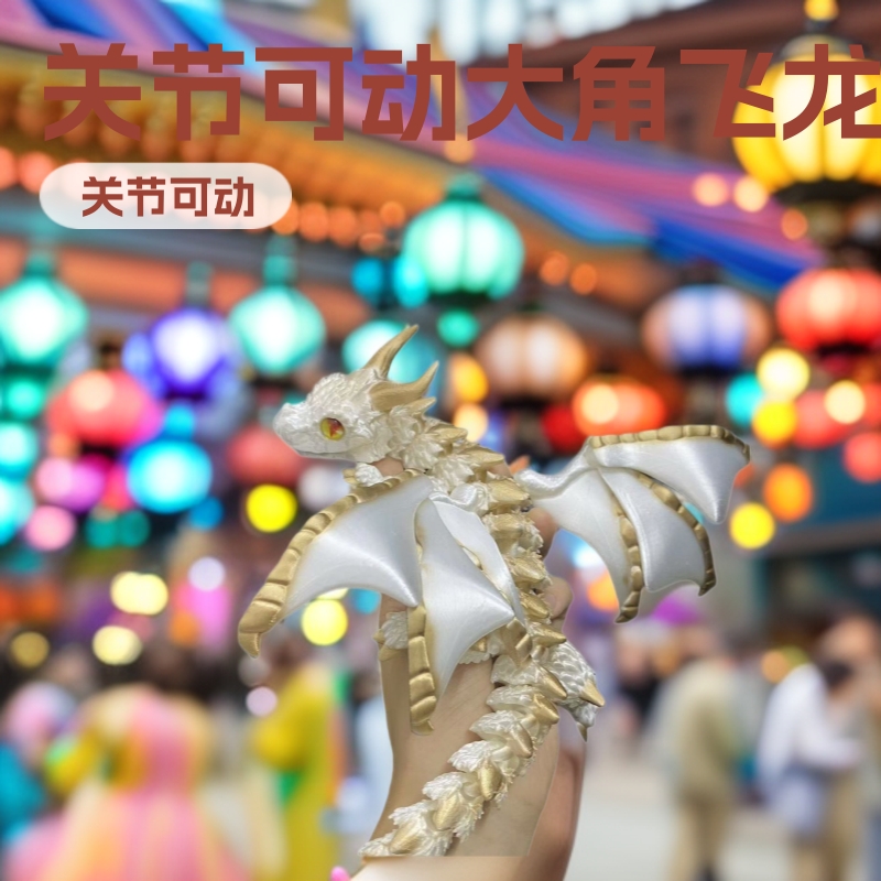 3d打印玩具大角飞龙夜市摆摊关节可动立体仿动物礼物车载摆件