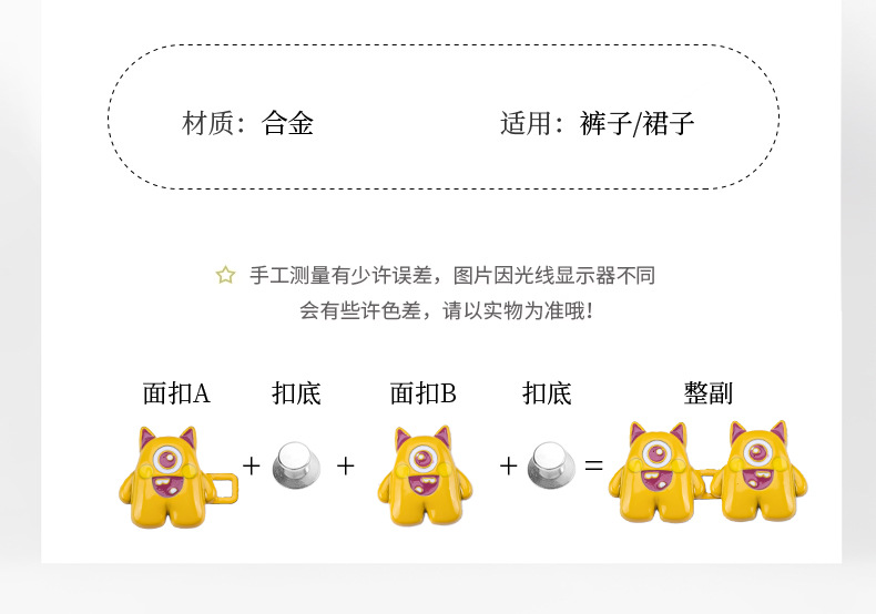片目の小さい怪獣は腰を収めてボタンを掛けます。