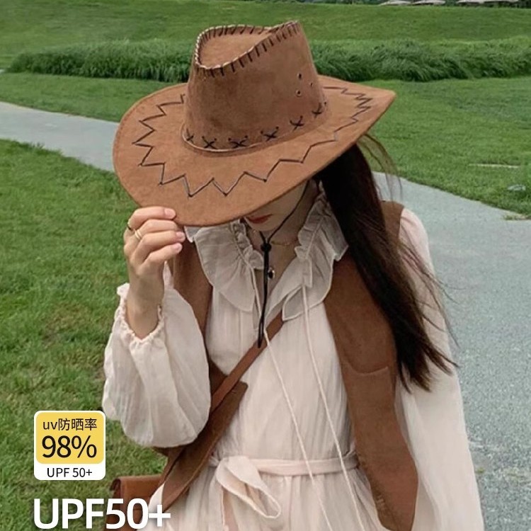 2025年夏新作 西部風カウボーイハット レディース 旅行用 日よけ帽子 大きな頭囲でも小顔効果あり 多用途帽子