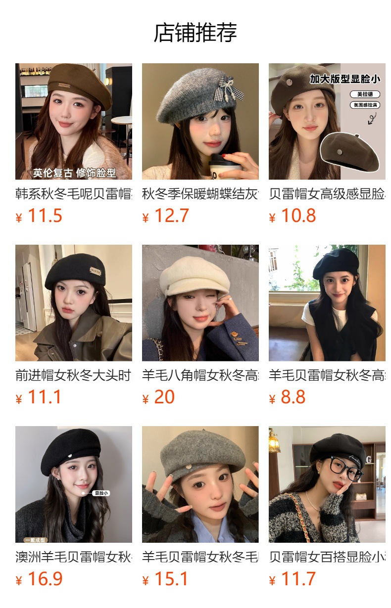 羊毛贝雷帽女秋冬高级感八角帽日系百搭帽子冬季保暖显脸小画家帽