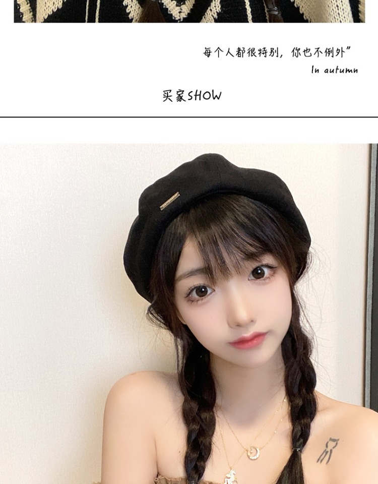 前进帽女秋冬韩系百搭贝雷帽毛呢保暖显脸小帽子大头围蓓蕾画家帽