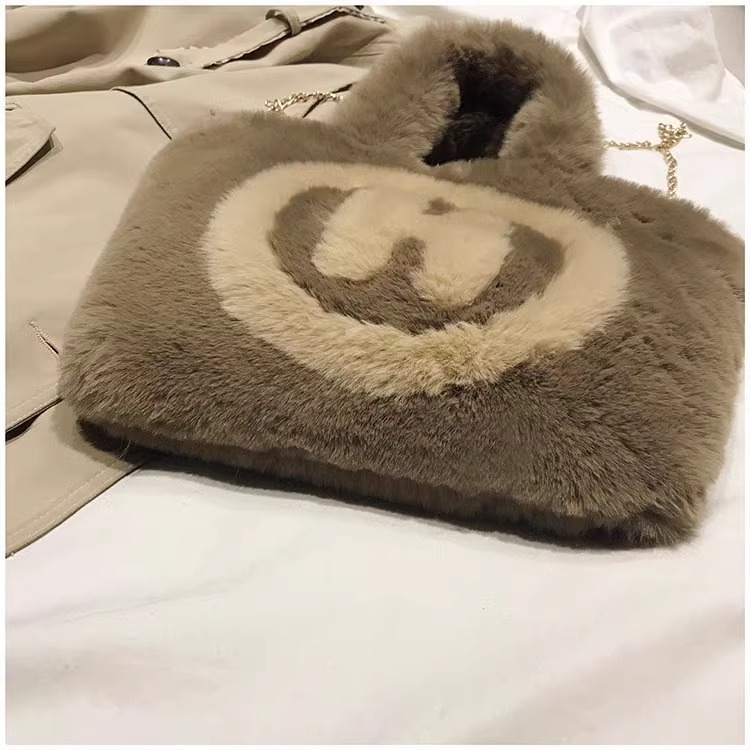 現物は毛のふわふわした手提げバッグを提供しています。