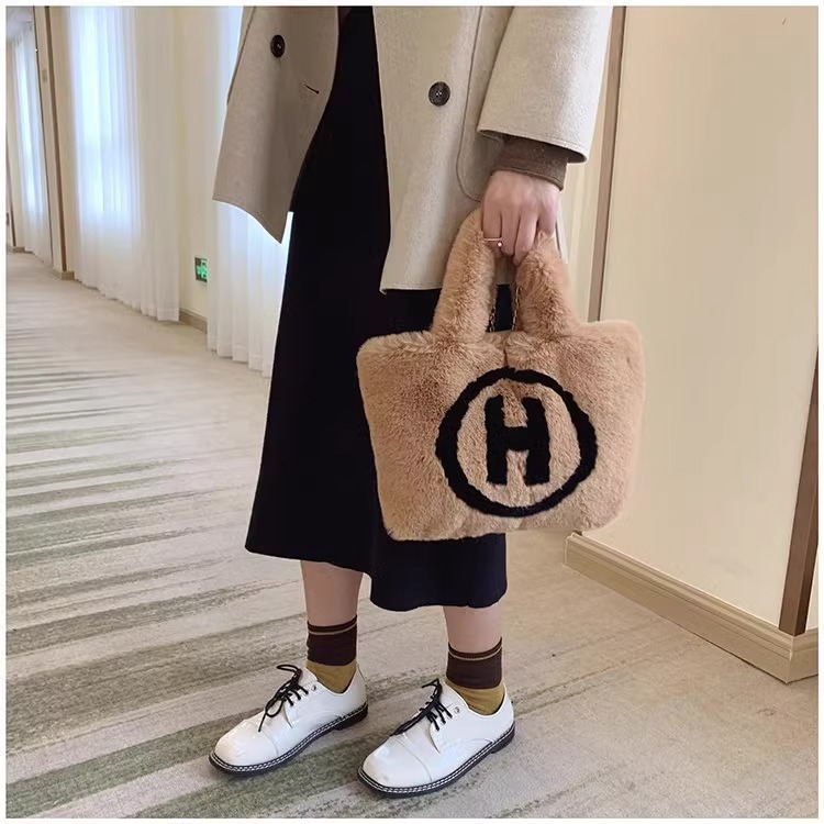 2023秋冬 日韓風 フェイクファー バッグ 高級感 ハンドバッグ H型バッグ ストリートファッション ガールズ ハンドバッグ トートバッグ 多用途
