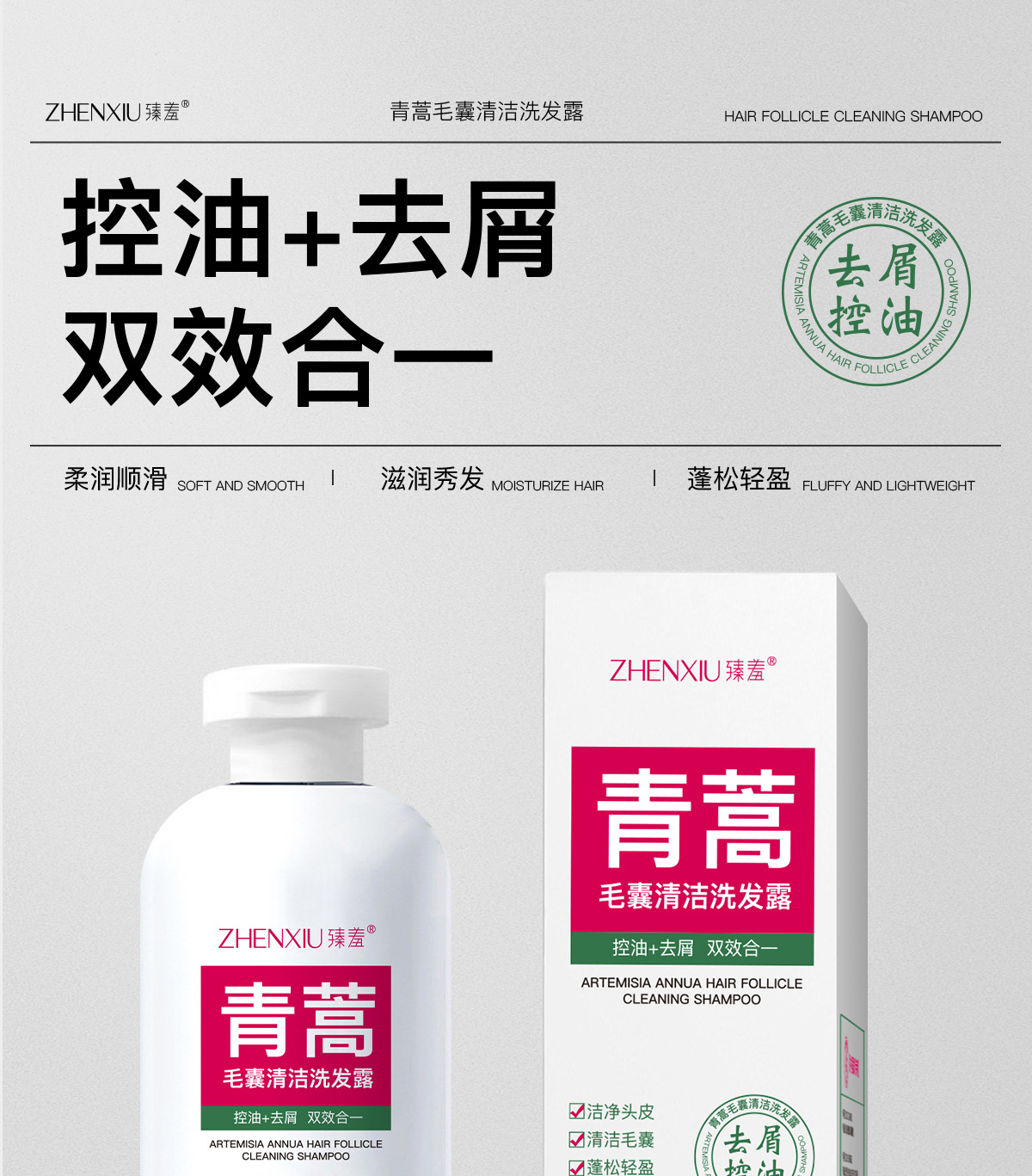 Zhensha Artemisia annua 毛包クレンジングシャンプーシリコンフリー抗ふけかゆみオイルコントロール長期的な香りのシャンプー卸売