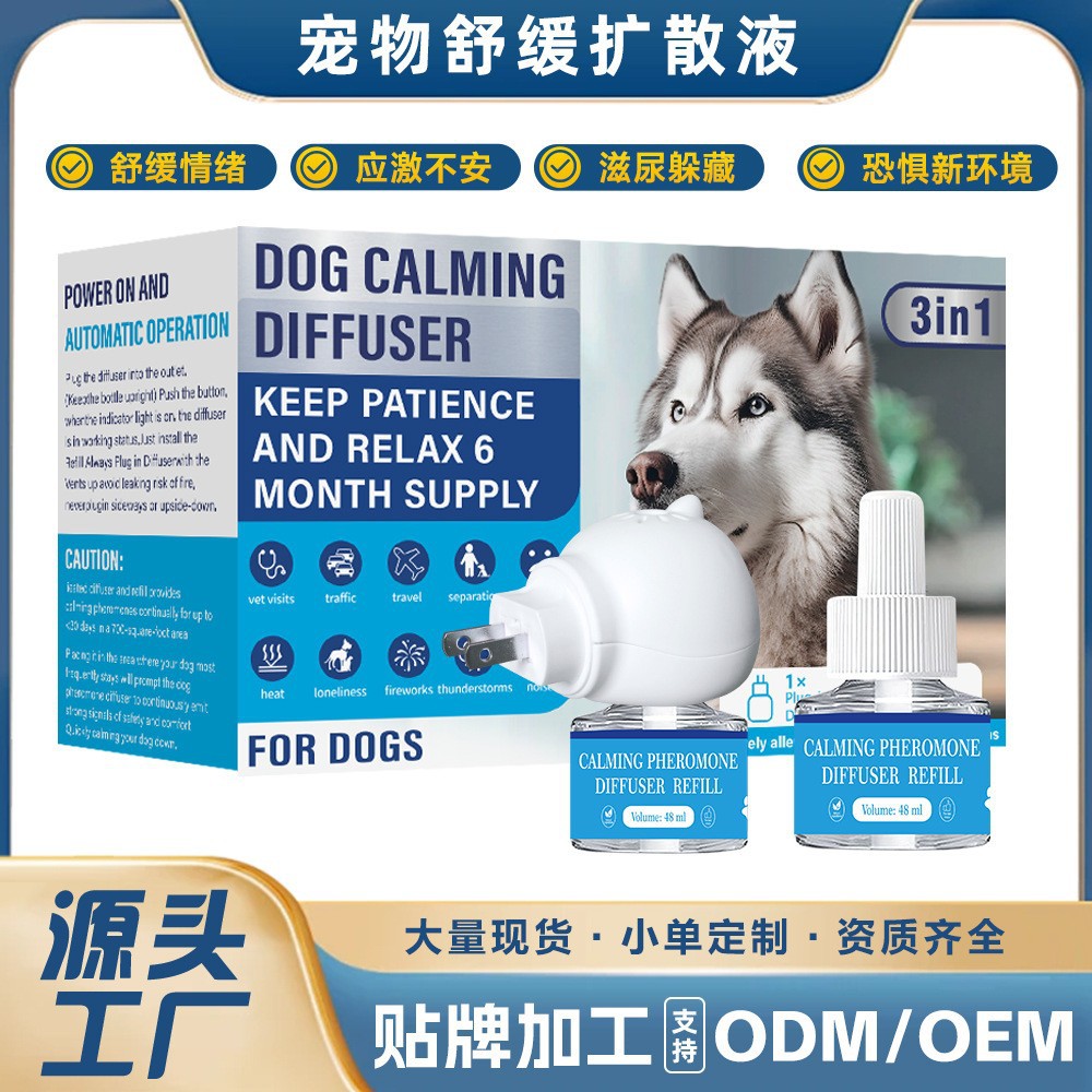 跨境狗狗用舒缓液宠物猫猫情绪安抚禁区喷雾补充液费洛蒙电加热