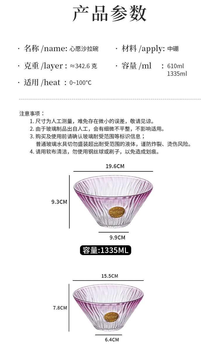 【代理】耐熱ガラス碗サラダ碗電子レンジ厚透明ガラス碗果物サラダ碗