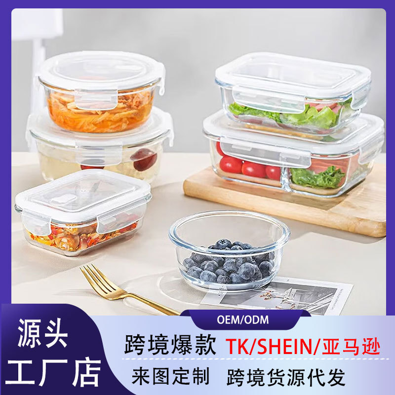 玻璃保鲜盒微波炉饭盒长方形便当盒冰箱专用带饭餐盒大容量保鲜碗