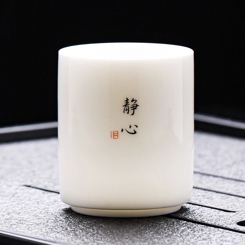 羊脂玉直口杯白瓷喝茶杯家用泡茶杯单个主人杯个人专用茶杯品茗杯