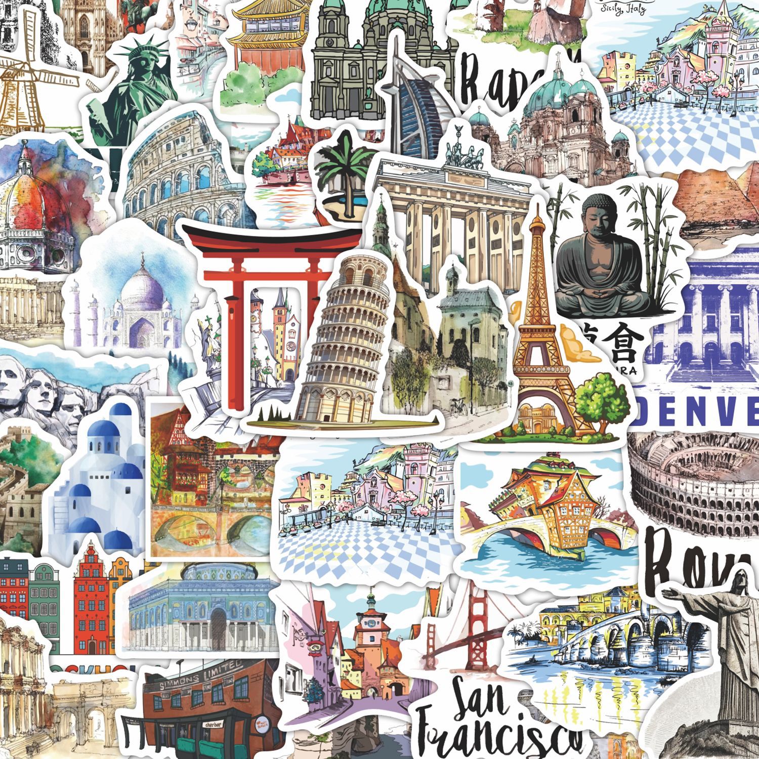 50枚旅行世界ランドマーク建築落書きシール手帳スーツケース携帯ケース日記ギター防水シール