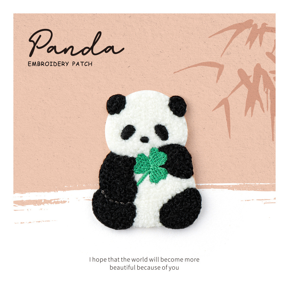 かわいいぬいぐるみのパンダの刺繍布はかばんの携帯ケースの服を貼ってファッションを飾っています。