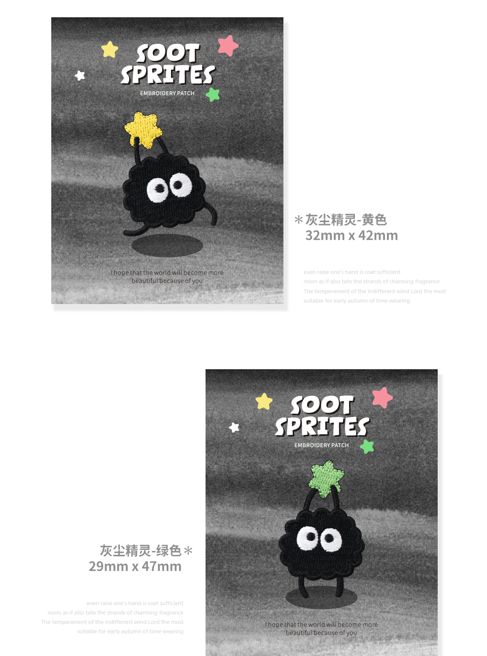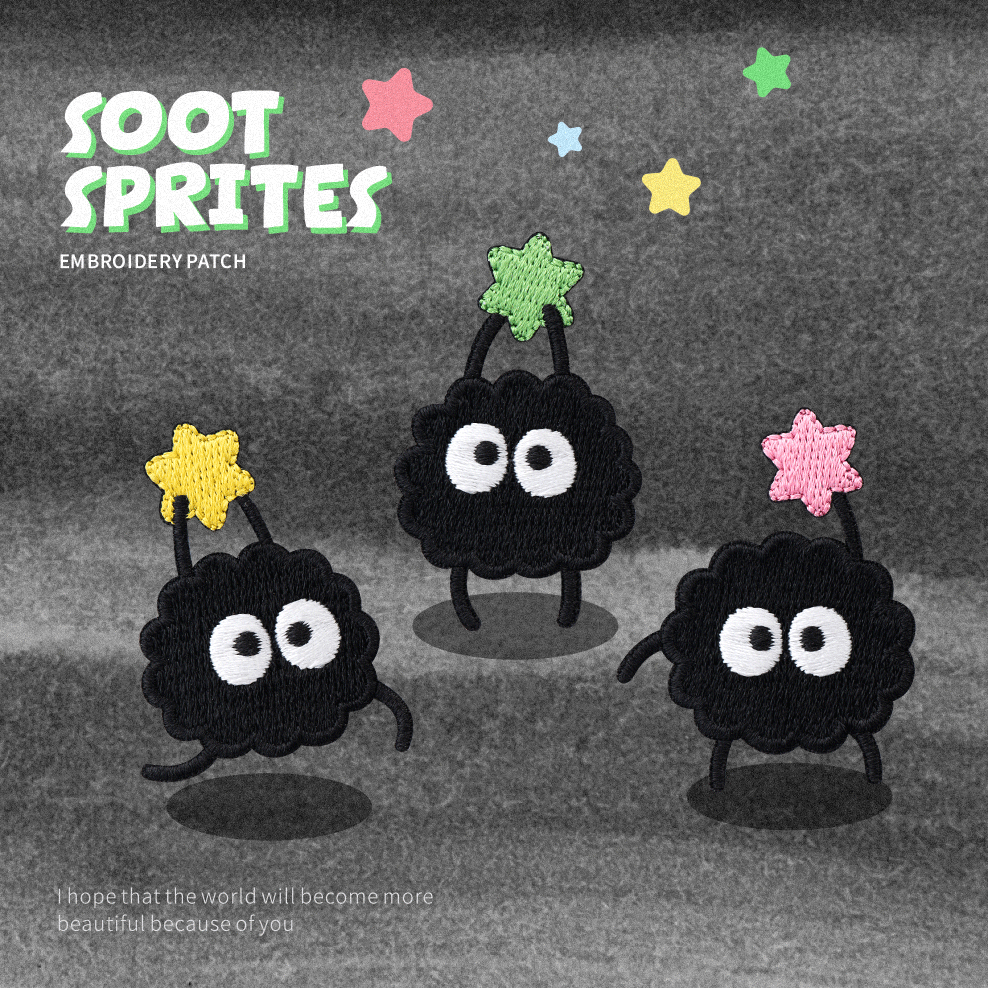 かわいい黒いほこりの石炭の精霊の刺繍はアイロンをかけません。