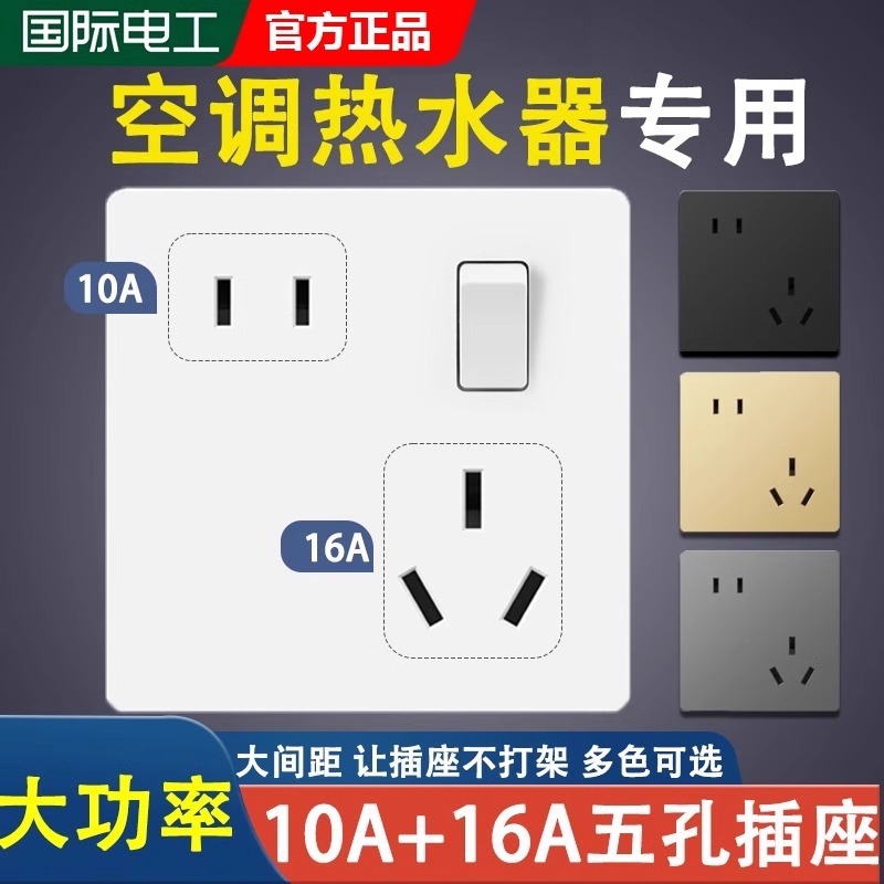 86型一开错位五孔开关插座16a大功率空调热水器专用墙壁插座暗装