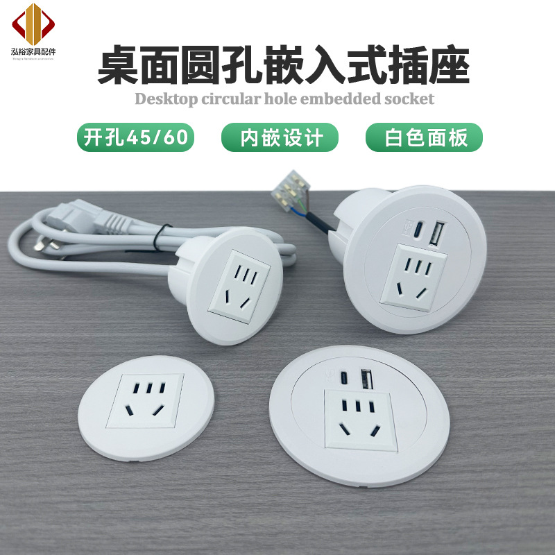 デスクトップ埋め込み式コンセント丸穴穴45 60穴キャビネット白い埋め込み式ステルス5穴USB家具コンセント