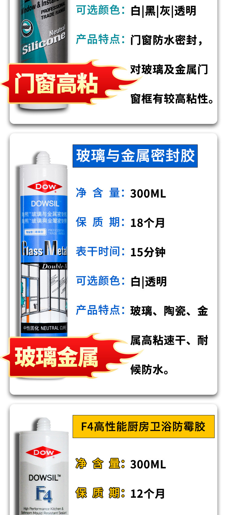 700ブラック(耐火・断熱),732 ホワイト (工業用酸性),732 透明 (工業用酸性),796 ホワイト (ドアおよび窓専用),796 ブラック (ドアと窓専用),796 グレー (ドアと窓のみ),796 透明 (ドアと窓のみ),F4 ホワイト(キッチン・浴室用防カビ),GLASS ホワイト(酸性ガラス),GLASS ブラック(酸性ガラス),GLASS透明(酸性ガラス),GMホワイト(ガラスメタル),GM透明(ガラスメタル),GPホワイト(酸性一般),GPブラック(酸性ユニバーサル),GPアルミカラー(酸性汎用),GP透明(酸性一般),NP ホワイト (ドライエリア用ユニバーサル),NPブラック(ドライエリア共通),NP グレー (ドライエリア用ユニバーサル),NPアルミカラー(乾燥部共通),NP透明(乾燥地帯共通),NP アイボリー (乾燥地帯に共通),キッチン・浴室用防カビホワイト,キッチンとバスルームの防カビ透明,とても快適な白(ドアや窓に共通),非常に快適な黒 (ドアと窓に共通),ハオシグレー(ドアや窓に共通),非常に快適で透明(ドアと窓の両方に共通),Youjie ホワイト (ドアと窓専用),Youjie ブラック (ドアと窓専用),Youjie グレー (ドアと窓専用),Youjie 透明 (ドアと窓のみ),798 ホワイト (食品グレードの防カビ)