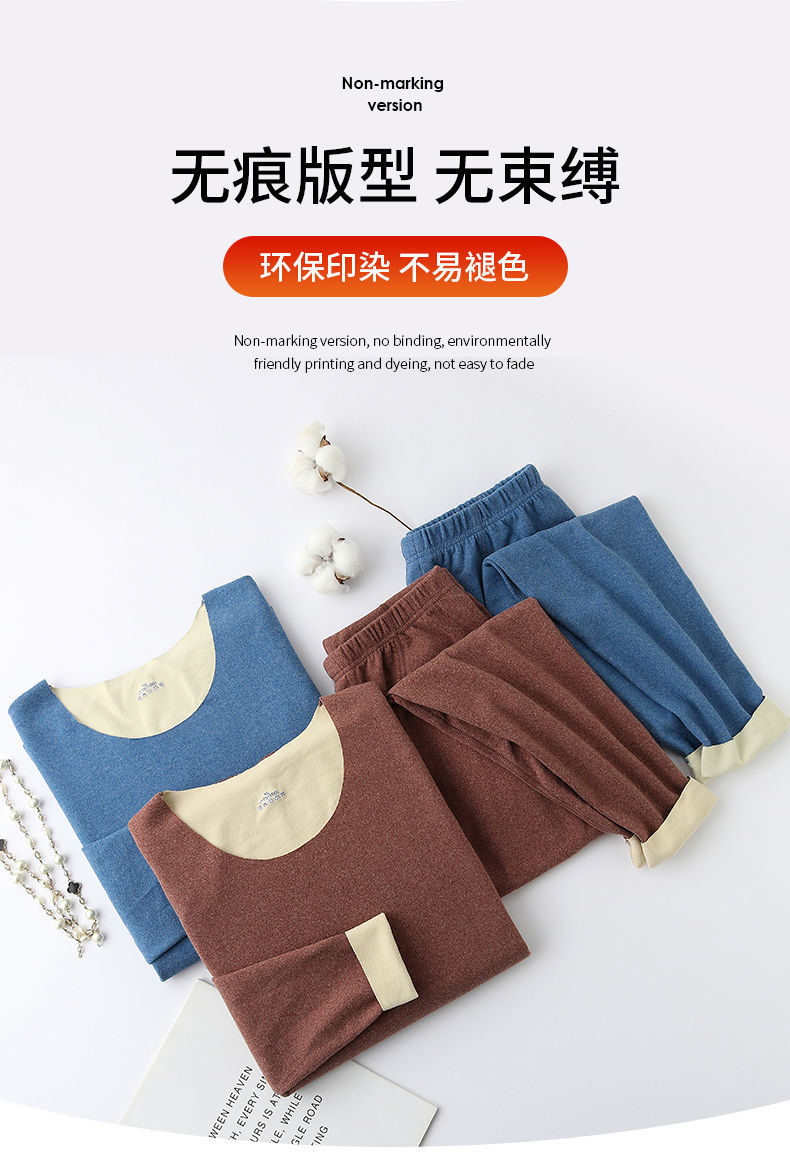 徳絨毛保温スーツ冬の新型女性の丸首とベルベットの厚手防寒カジュアルシャツ秋衣秋ズボン
