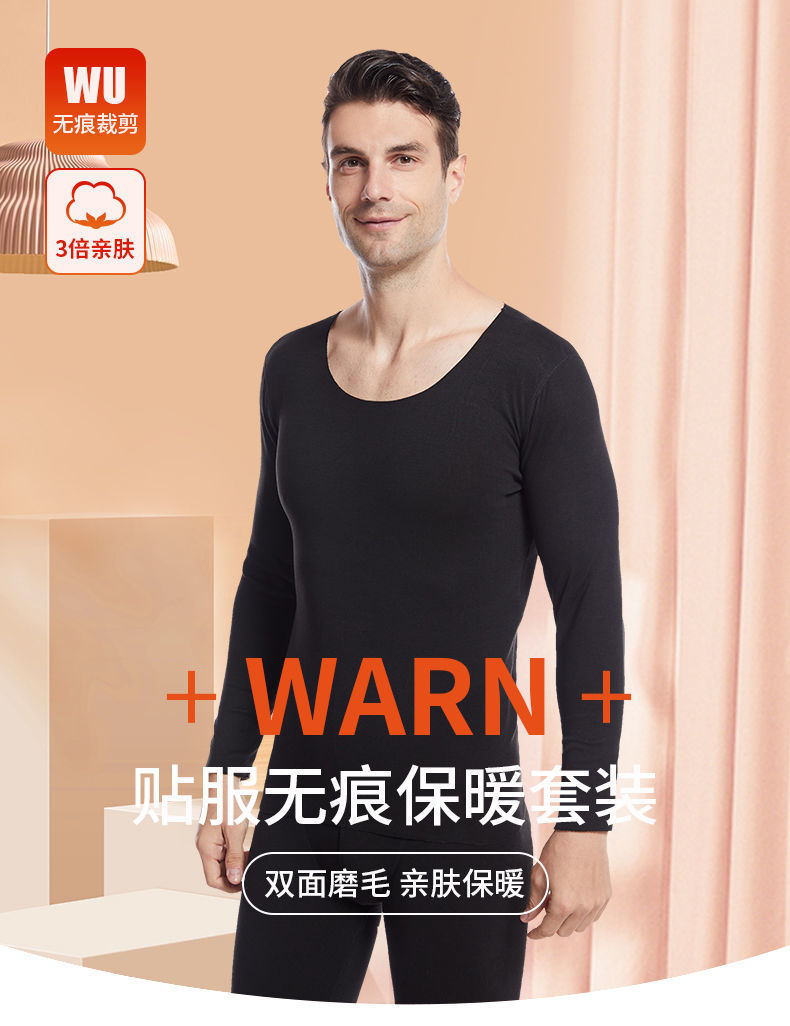 徳絨毛AB面男性秋衣秋ズボン冬の新型無痕底保温両面にベルベットをつけて下着セットを厚くする