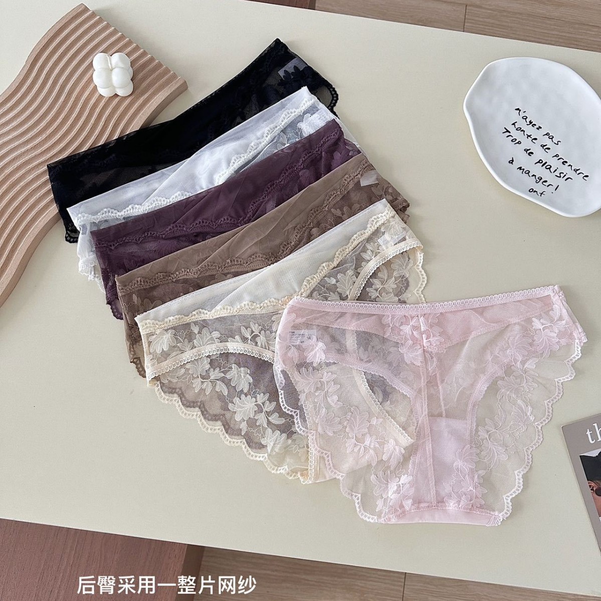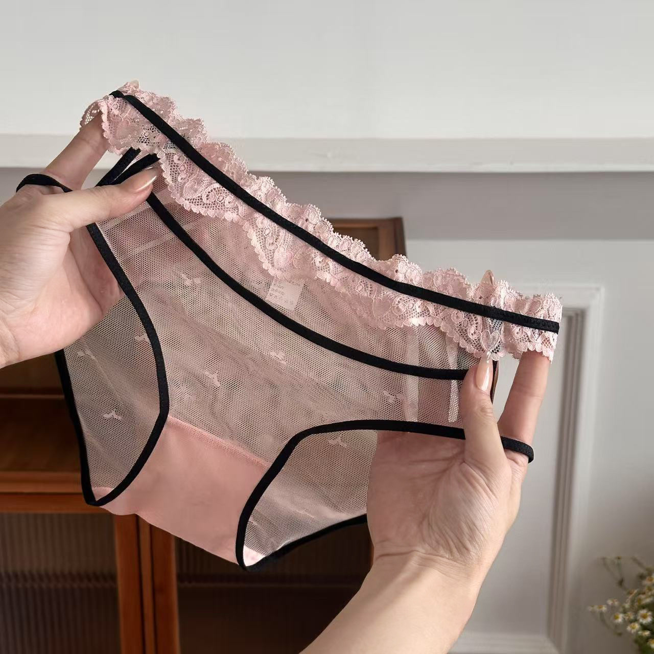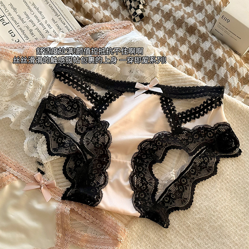 オープンサテン ~ 日系レースパンツの薄い腰の透明な透かし彫り綿の股の誘惑