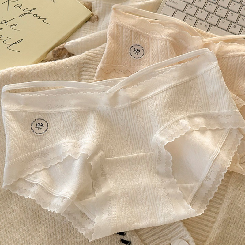 ソフトfufu ~ クリームパンツ女性シームレスレース辺抗菌純綿股部中腰包尻少女風三角パンツ