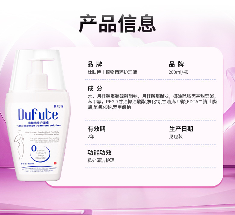 Dufu デキストラン プライベート ケア ソリューション 200ml 女性のプライベート パーツ ケア ジェントル SPA クレンジングおよび抗菌ソリューション