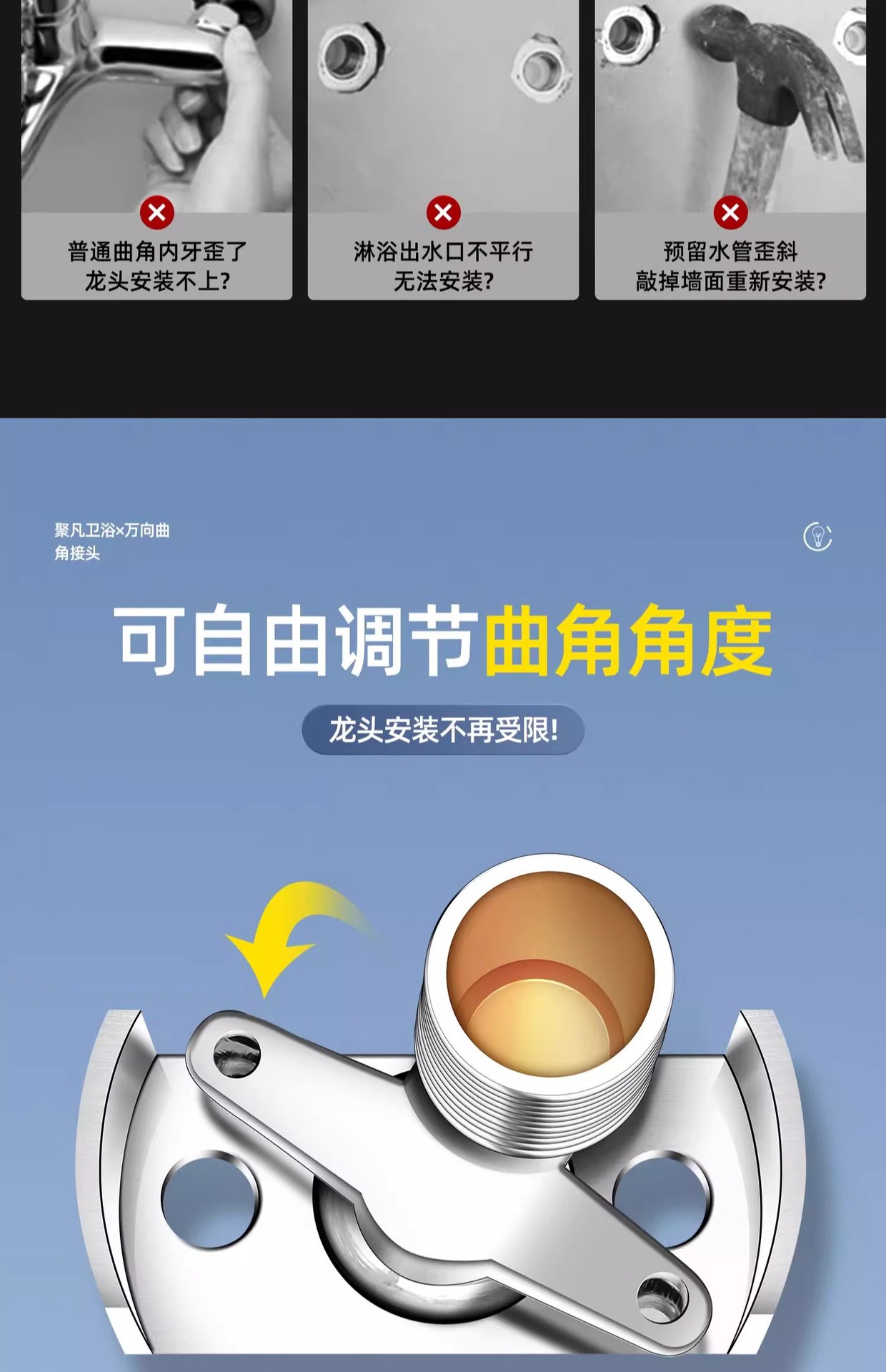 自在曲角ジョイントシャワーの蛇口の変径が曲がっています。