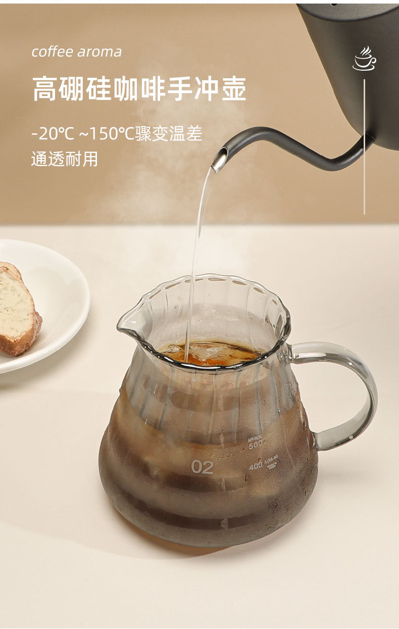 Rorenceハンドコーヒーカップフィルター耳かけハンドポットフィルターカップガラスシェアポットドリップポット