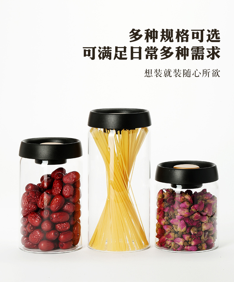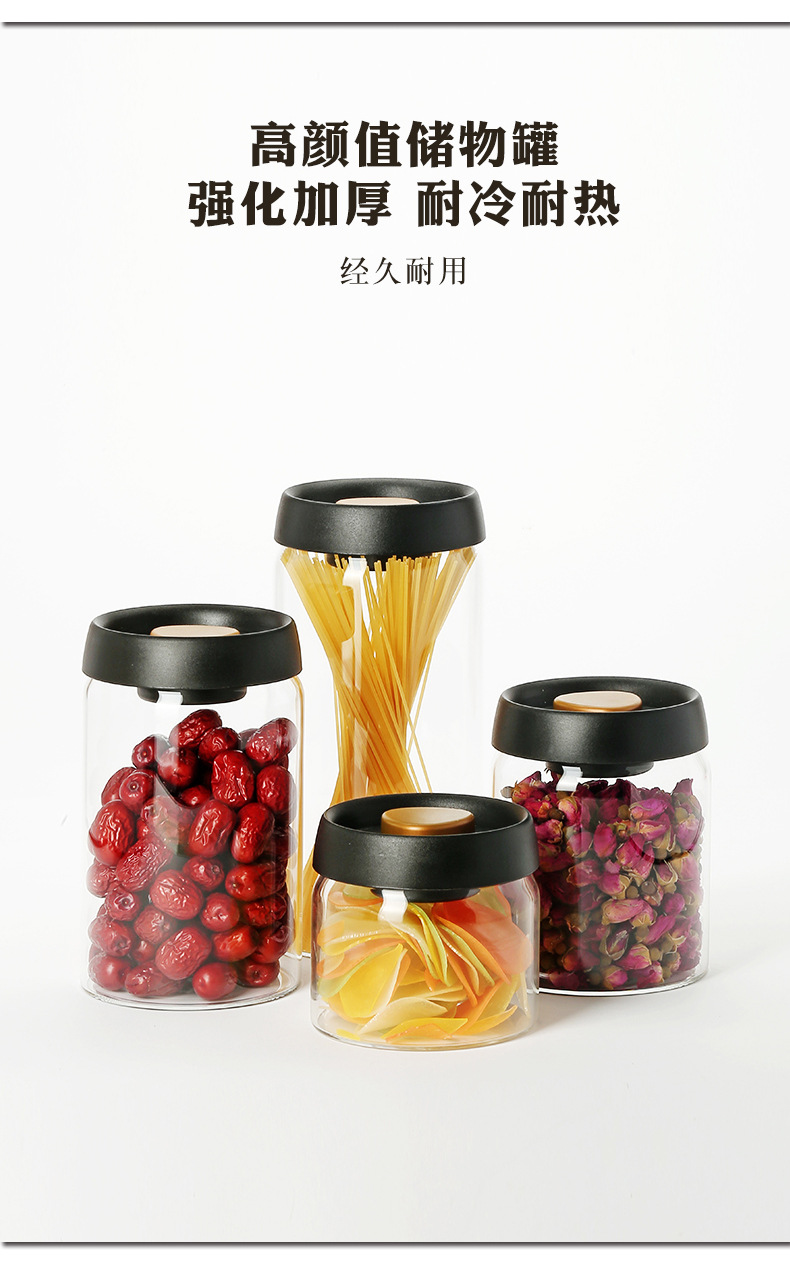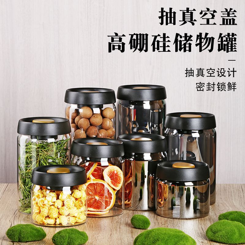 高ホウケイ酸ガラス密封瓶保存瓶キッチン穀物キャンディー瓶プッシュ式真空保存瓶