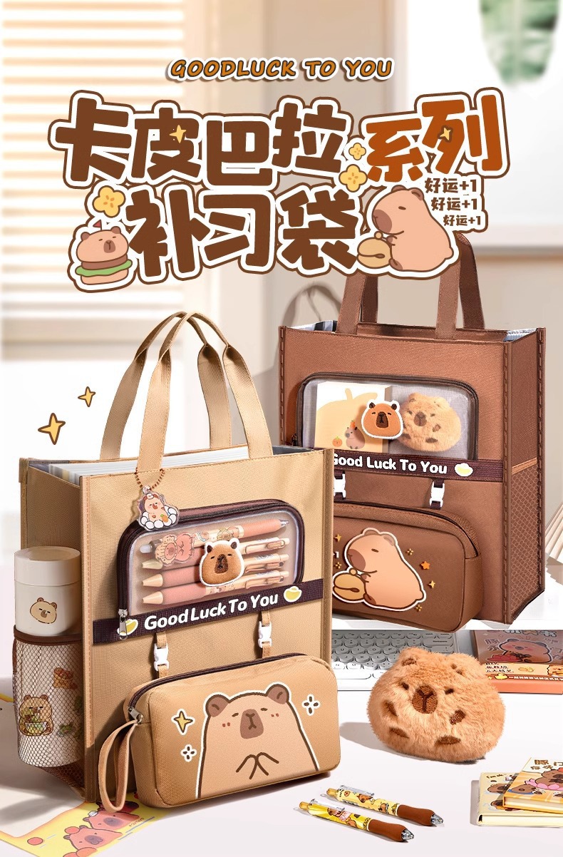 A4カピバラ塾バッグ高颜値手提げキャンバスバッグ大容量便利式子供補習バッグ美品バッグ
