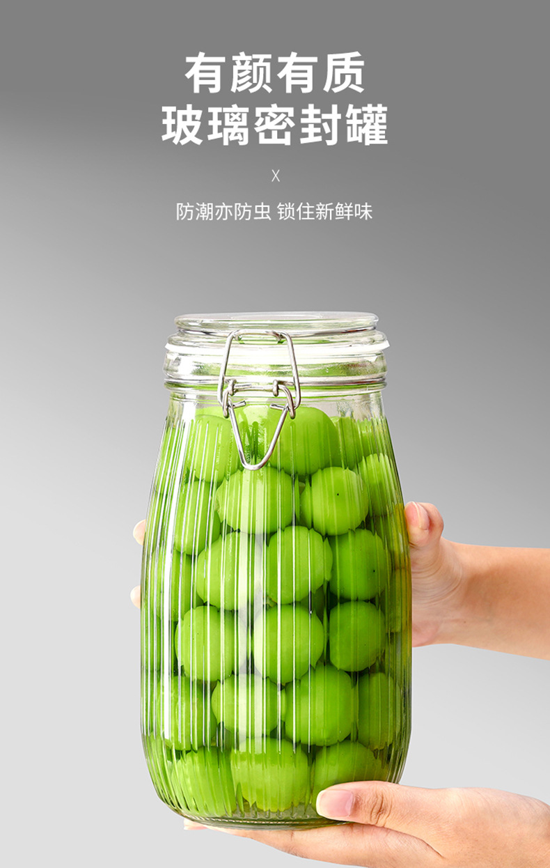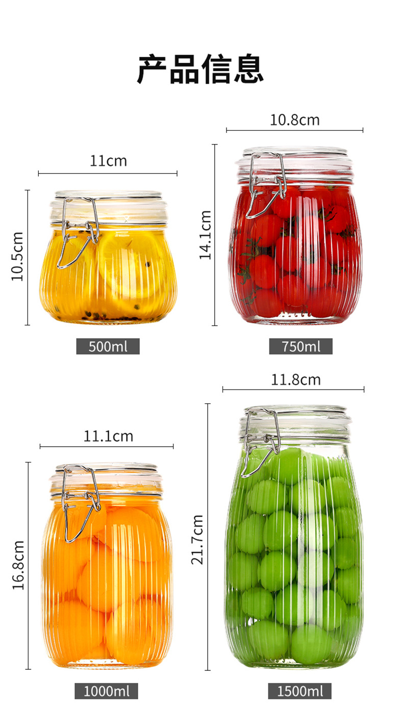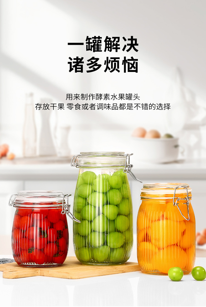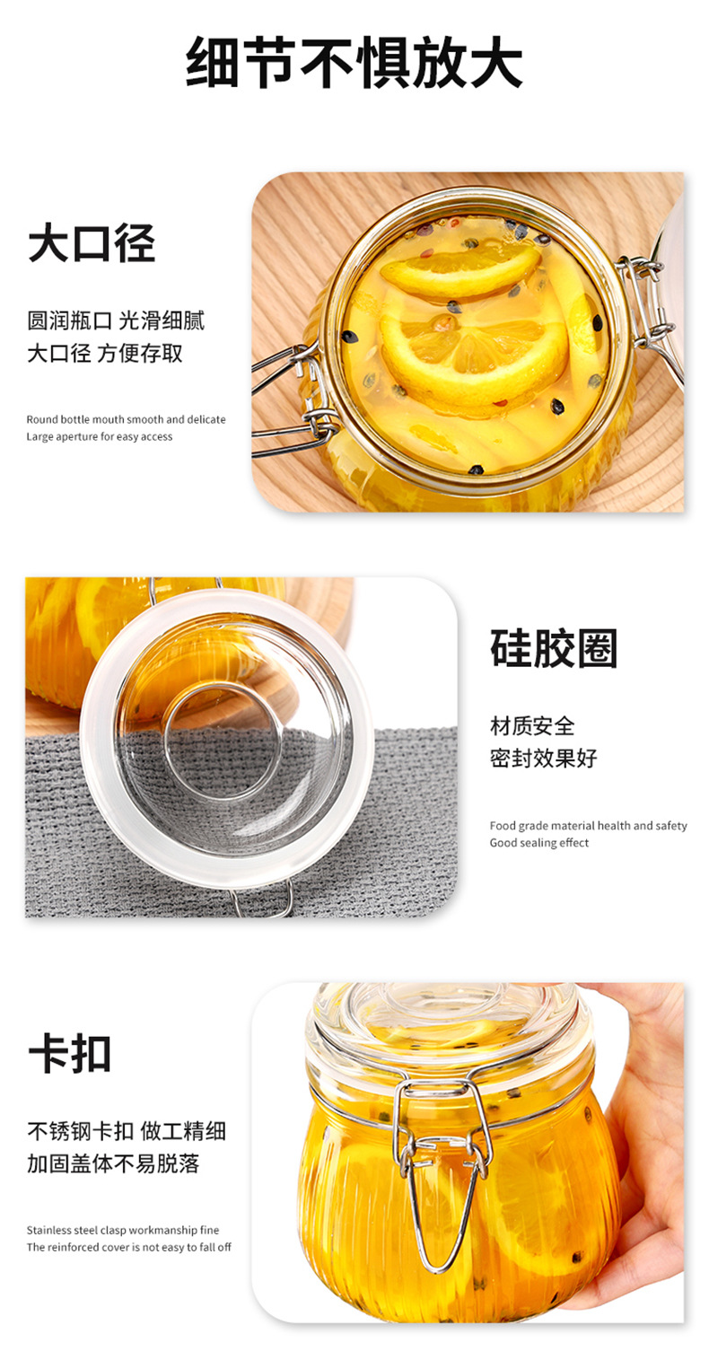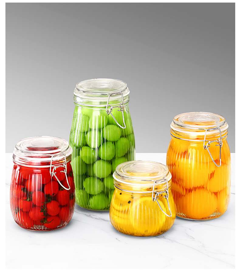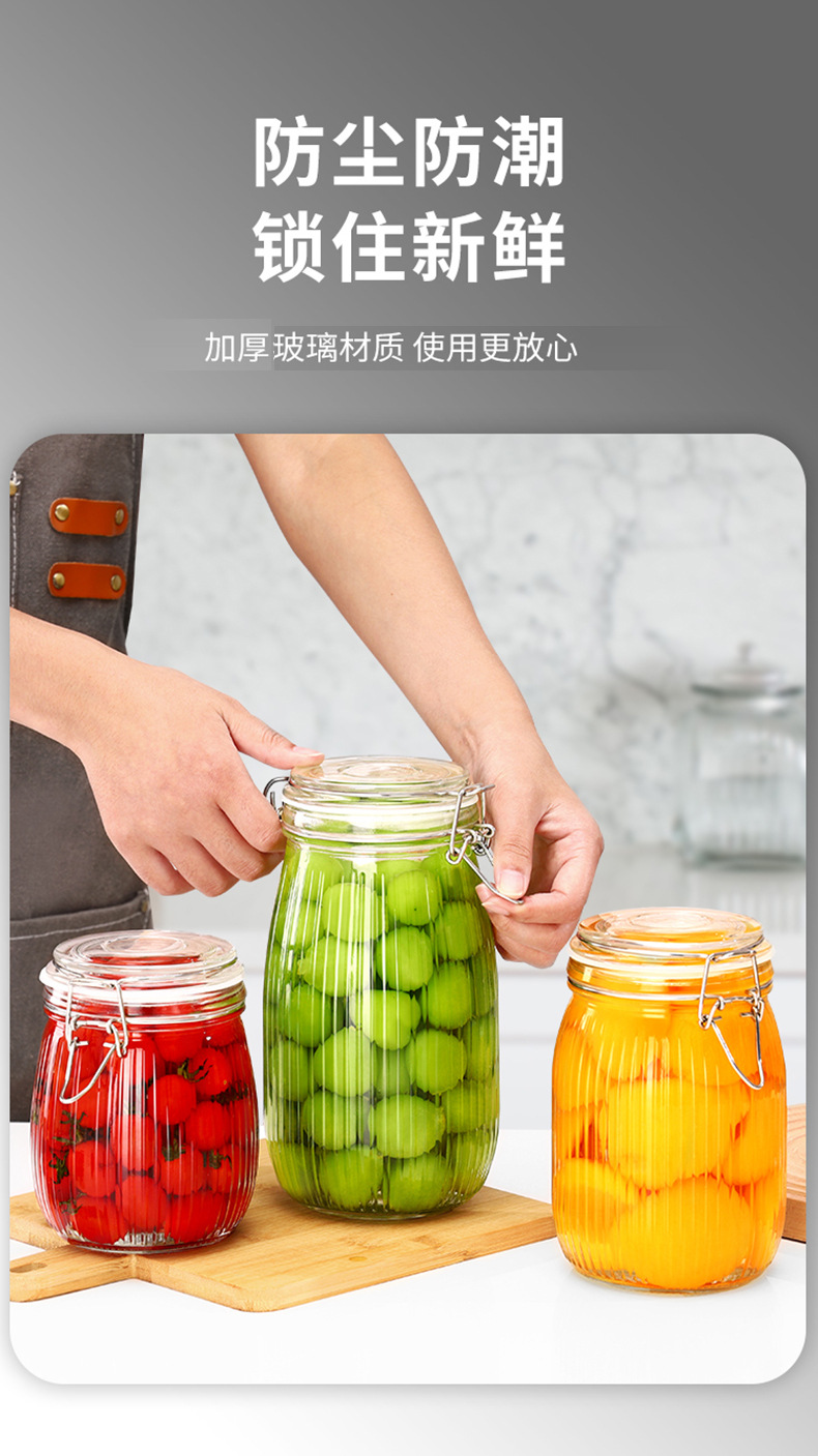 ガラス透明丸漬物瓶蓋付き密封ジャム瓶厨房雑穀分注瓶キムチ瓶漬物瓶卸売り