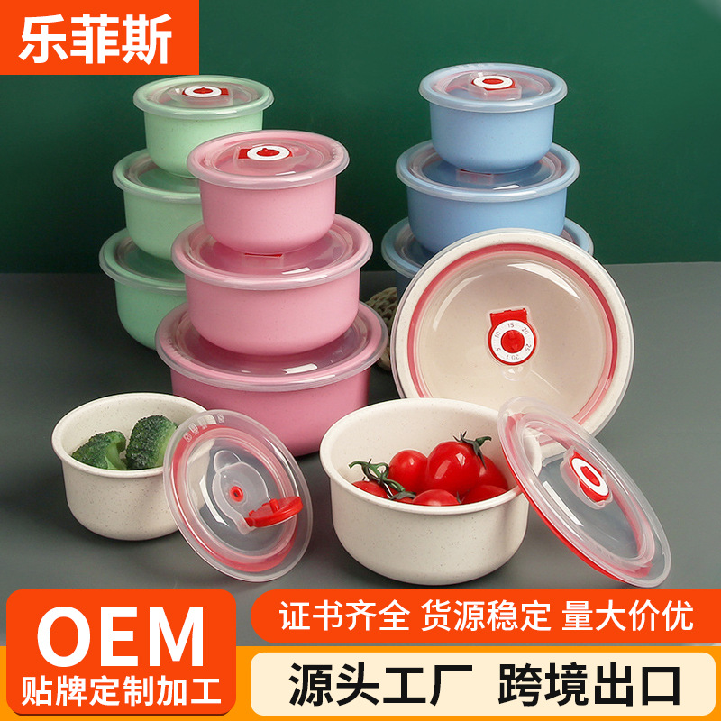 小麦わらセット家庭用冷蔵庫保存物保存ボウル高顔値プラスチックボウル密封蓋保存ボウル卸売り