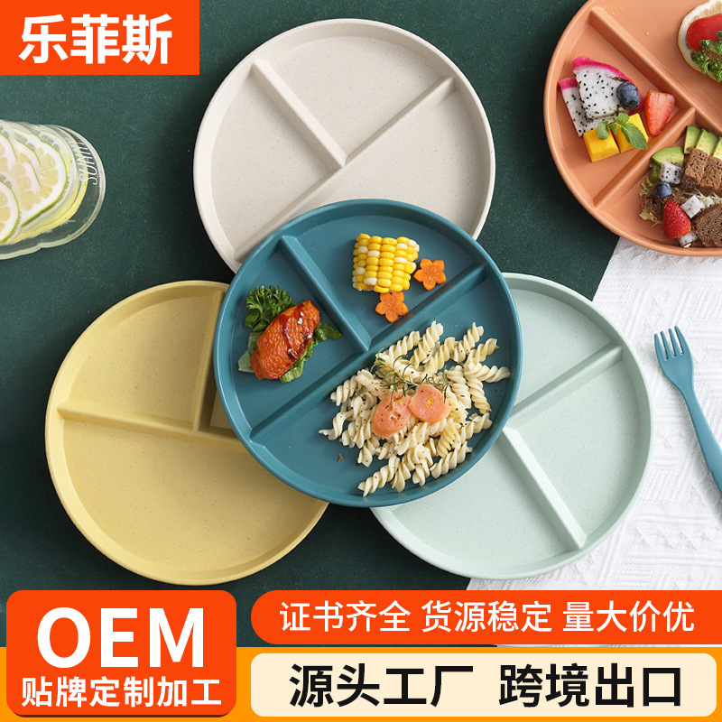 小麦わら家庭用分格食事皿円形皿日本式三格サラダ朝食皿プラスチック皿卸売り
