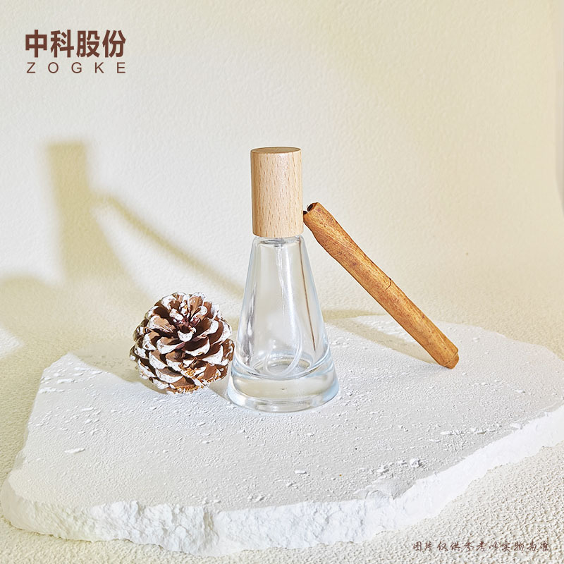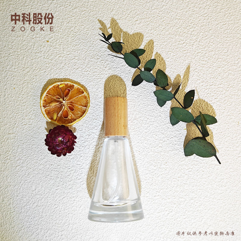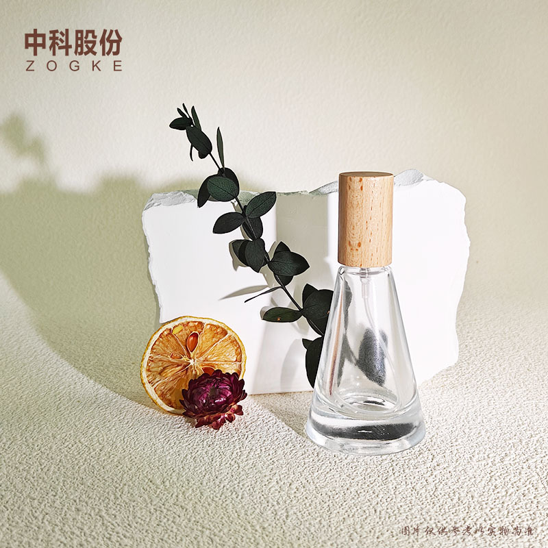 新しい香水ボトル 50 ミリリットル逆円錐パゴダ型プッシュ式スプレーボトルサンプル詰め替えボトル木製キャップガラスボトル