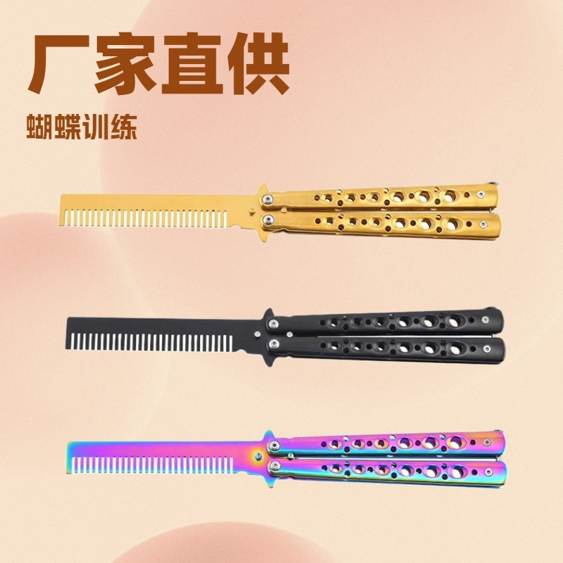 新型全鋼蝶櫛未開刃櫛練習櫛全鋼訓練刀折り畳み櫛現物