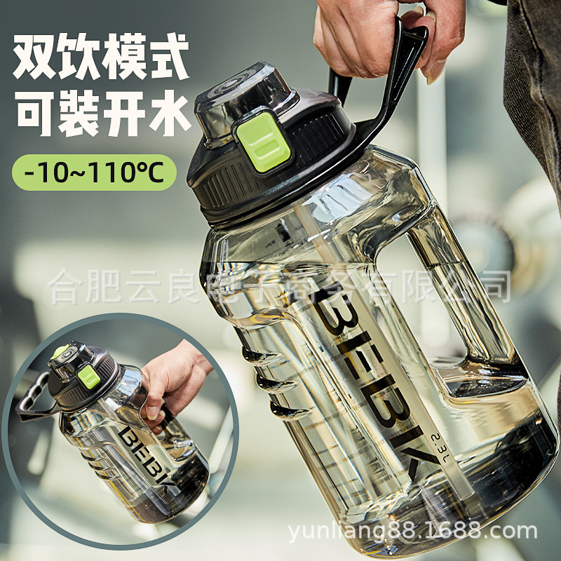ダブルドリンク厚い大容量水カップメンズスポーツ水筒男性フィットネスバケツトンバレルストローカップ夏
